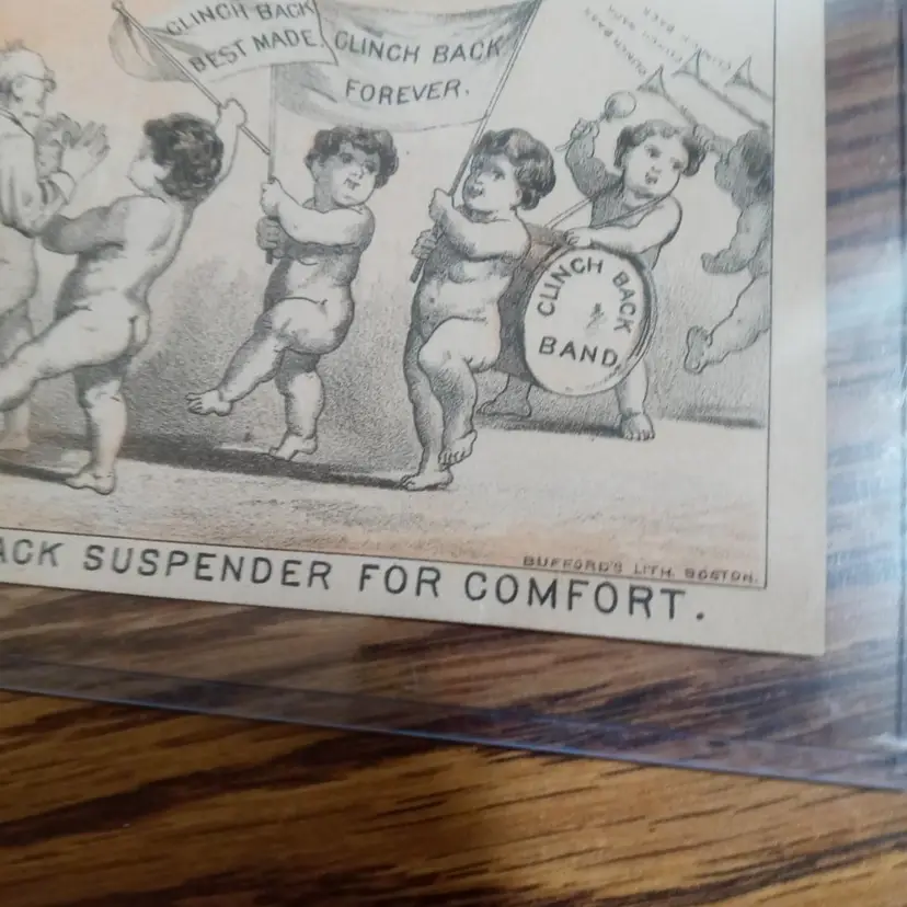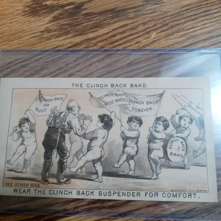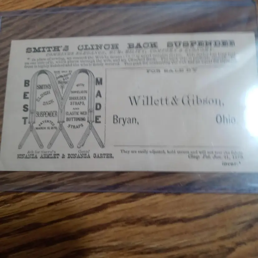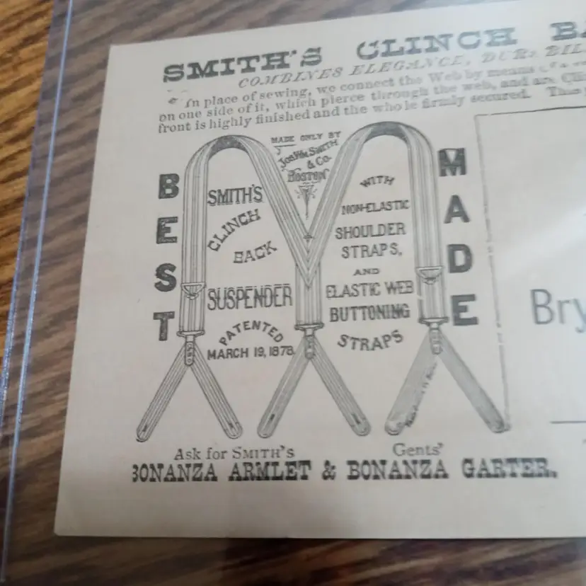 Rare antique trade card June 21 1879 Smiths clinch back suspenders in vf +++ condition see photos