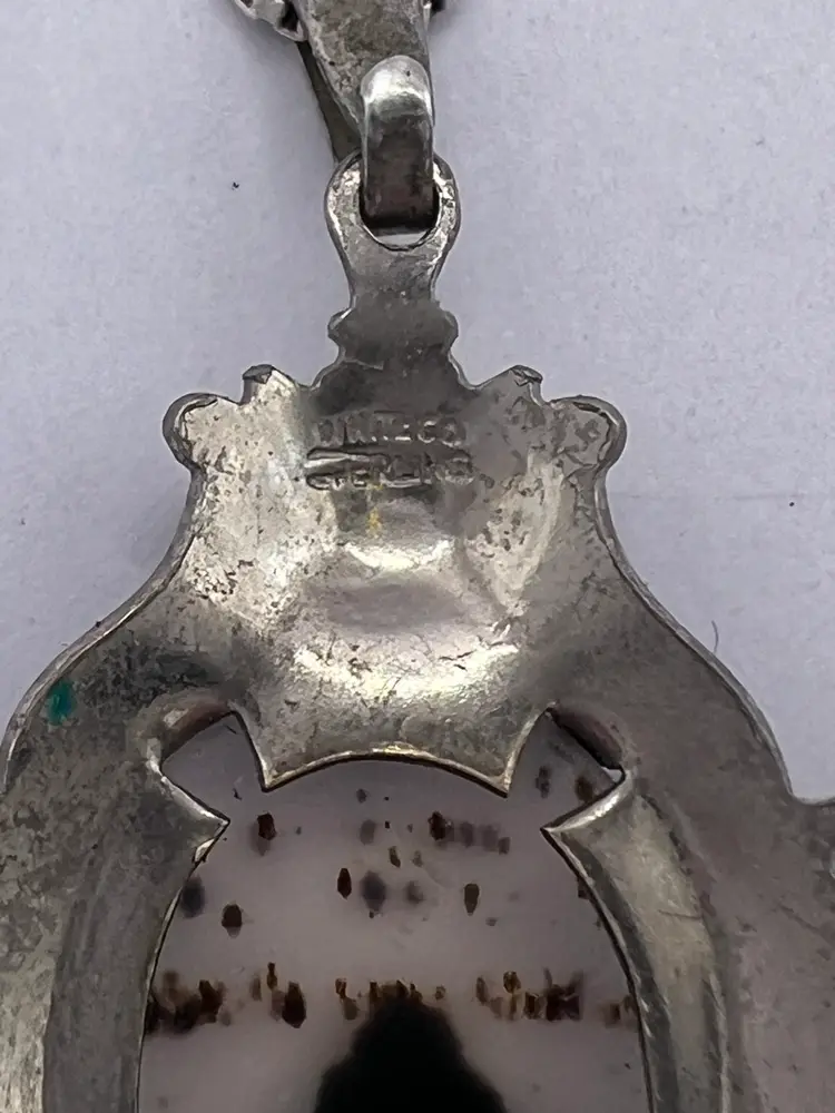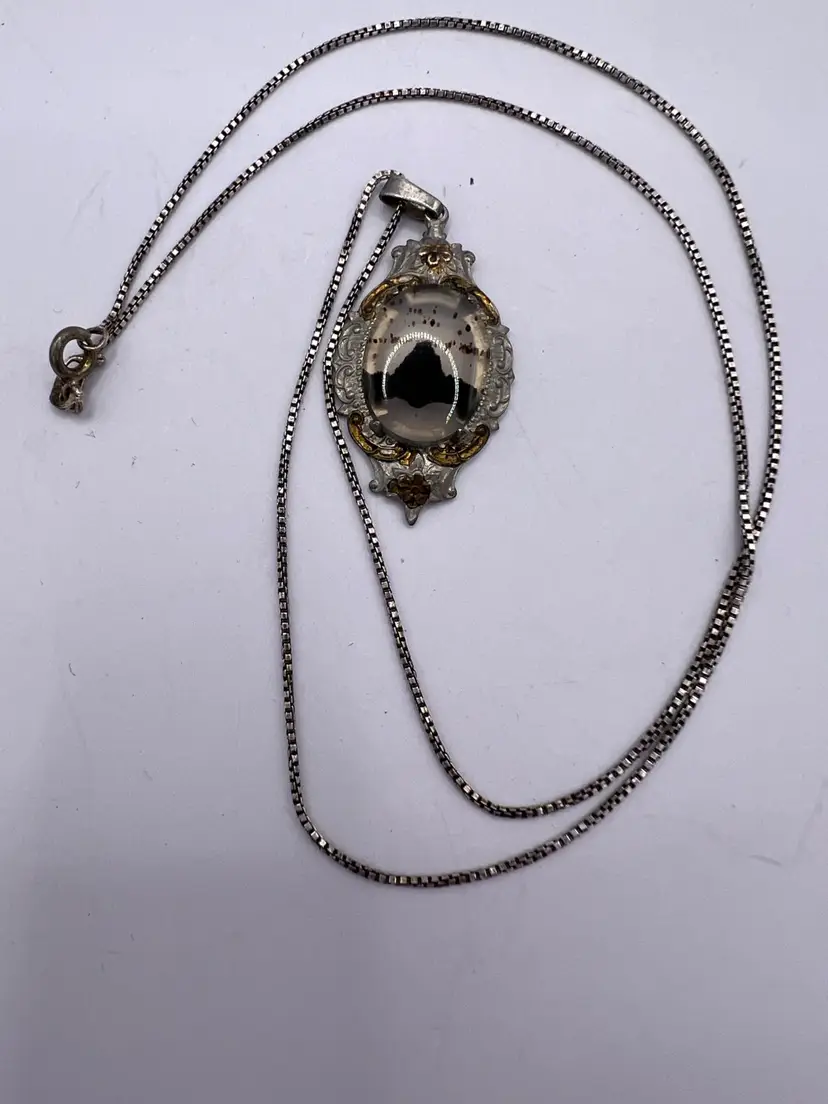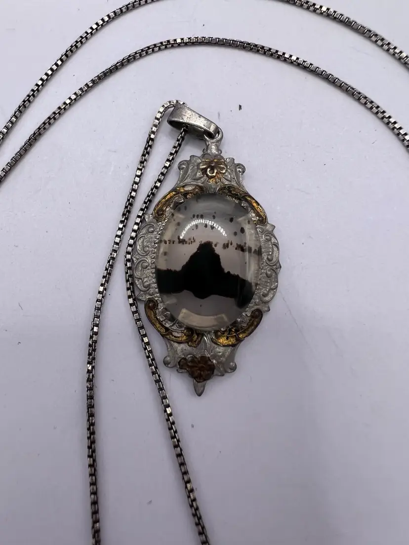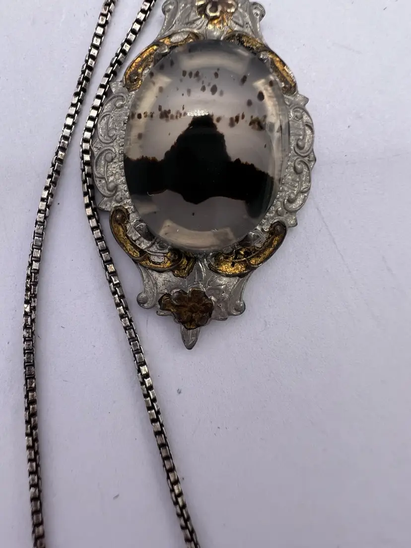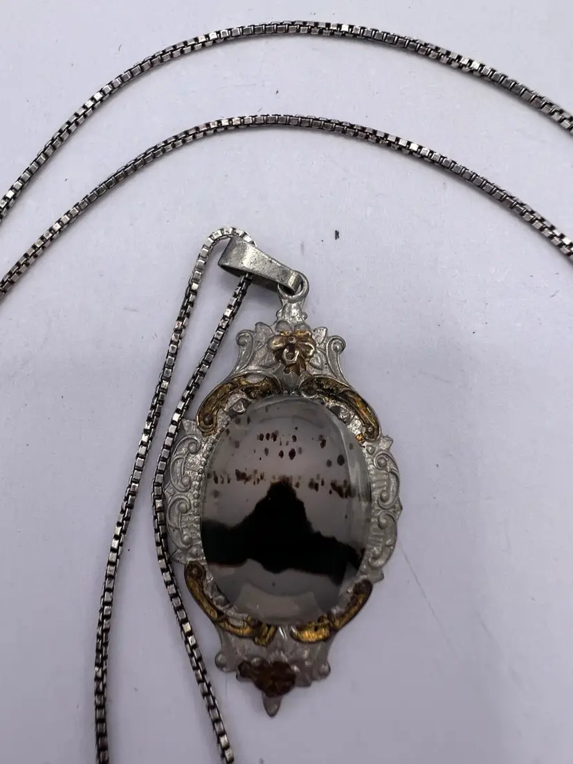Delicate Montana agate is harvested from along the Yellowstone River This agate is highly collectible The pendant and chain are both sterling (tested) The gold is worn and could be regilded The chain is 18” Packed securely and shipped within 2 business days of purchase Please let me know if I can be of any assistance