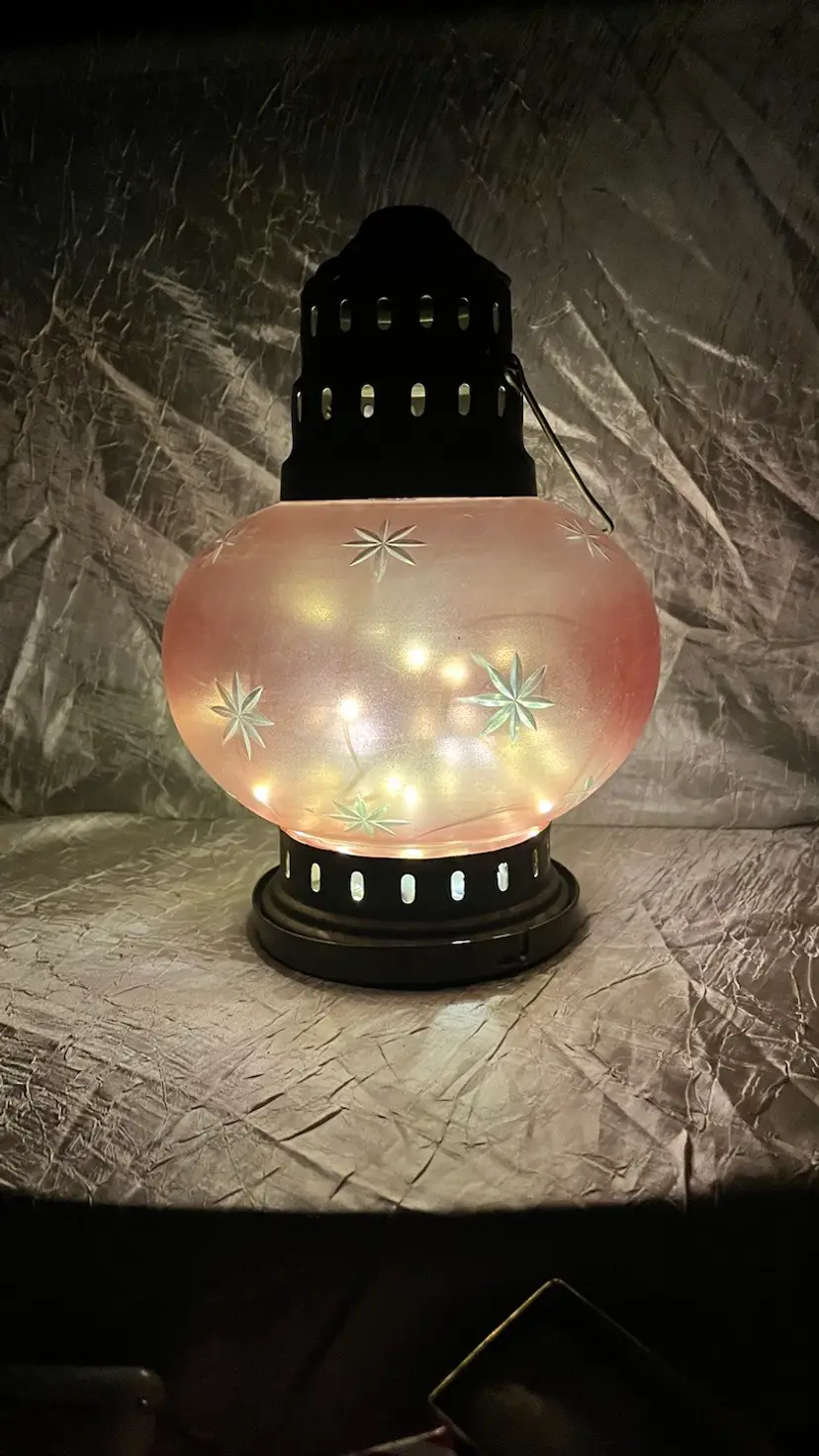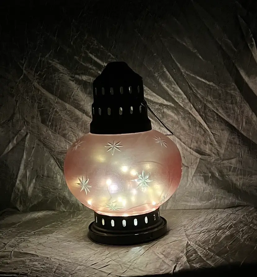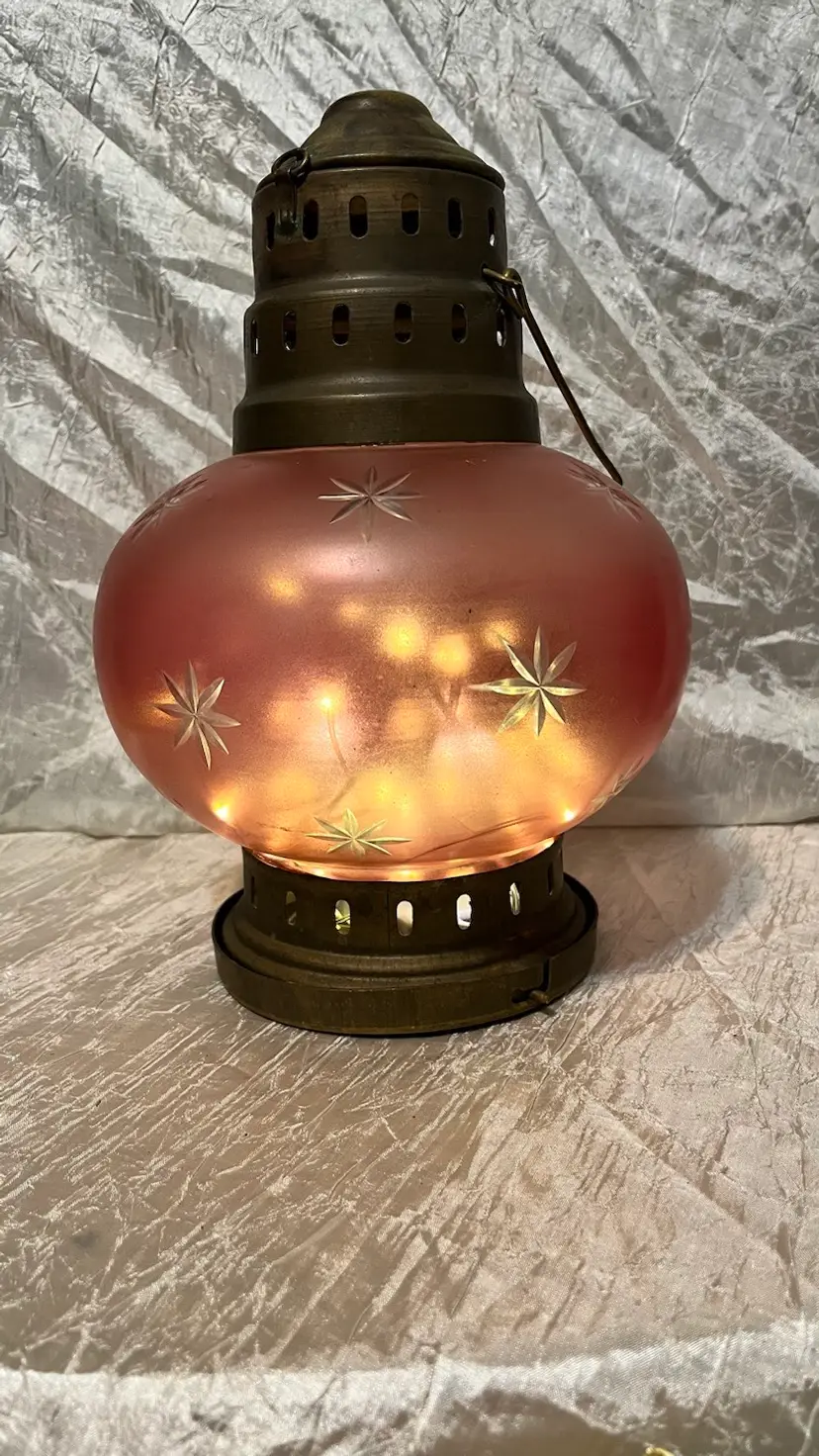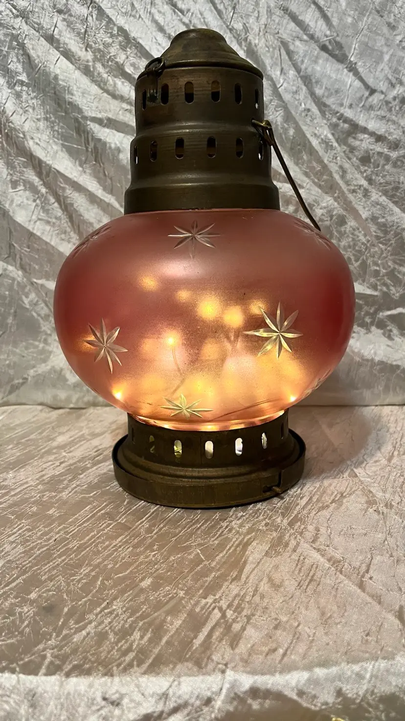 Vintage pink glass tealight lantern. In nice condition. Hard to find.