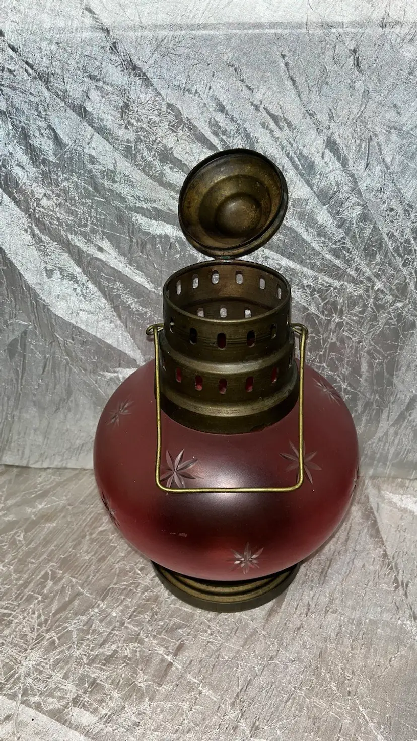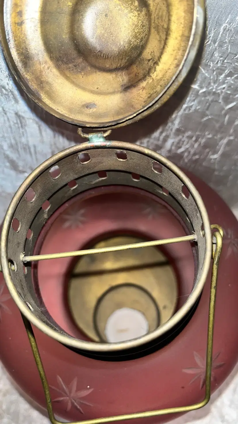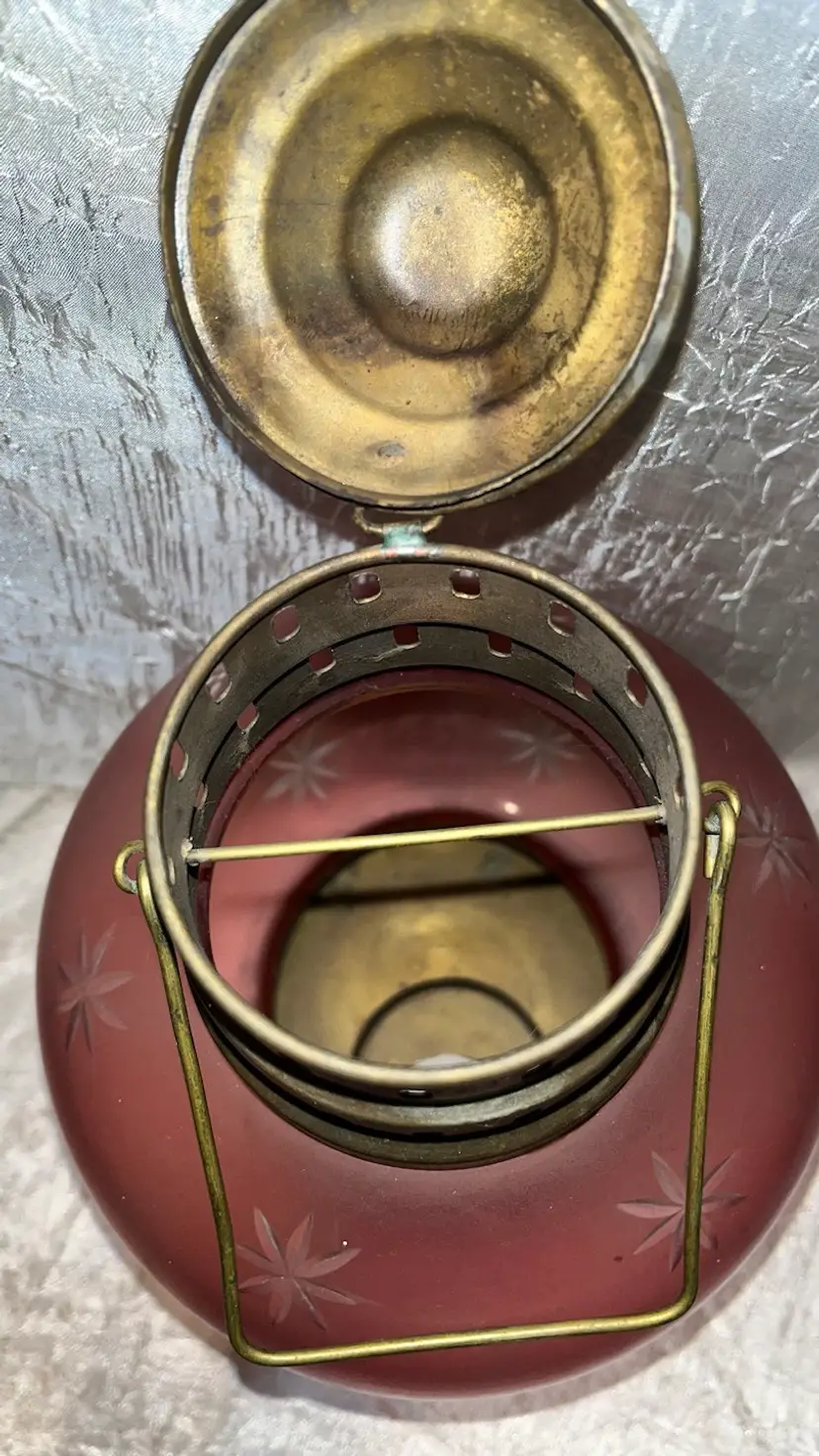 Vintage pink glass tealight lantern. In nice condition. Hard to find.
