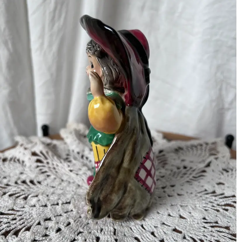 Adorable figurine by Napco from the 1950’s that’s hand painted with a heavy glaze. It’s has no defects at all. He measures 5” tall, 2” wide, 3.5” and was made in Japan. I have other figurines from the same series listed.