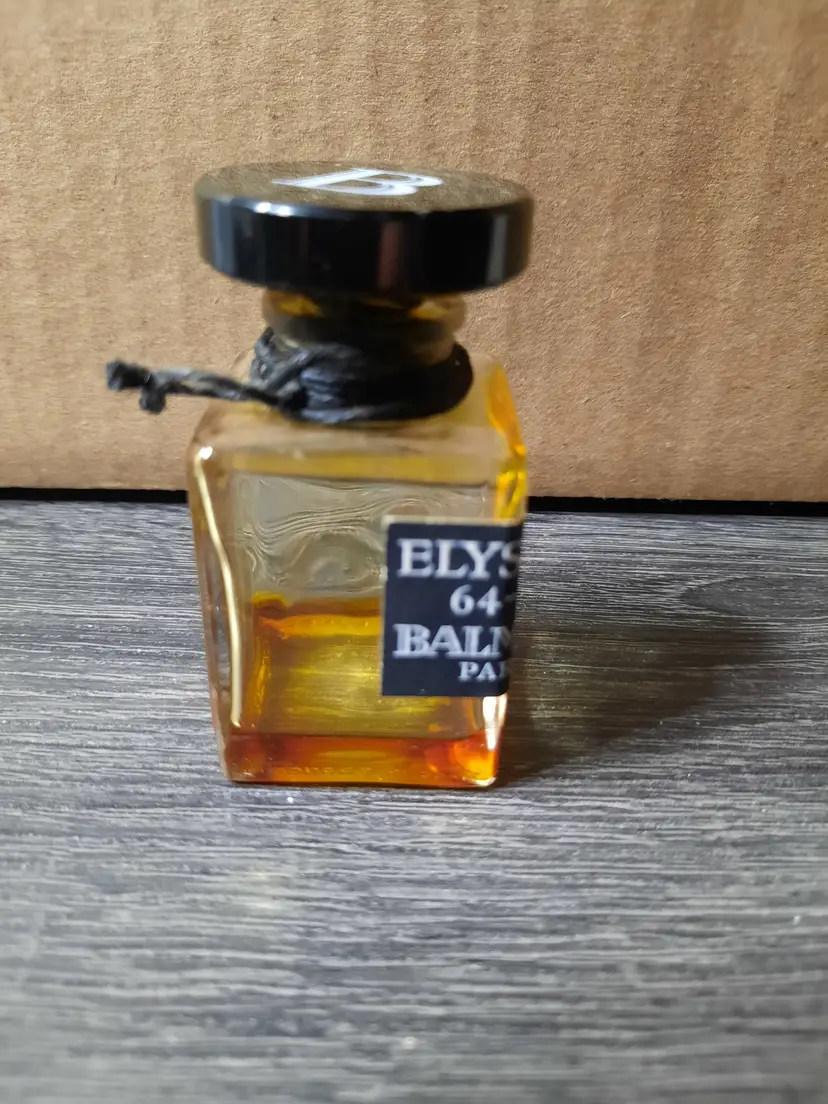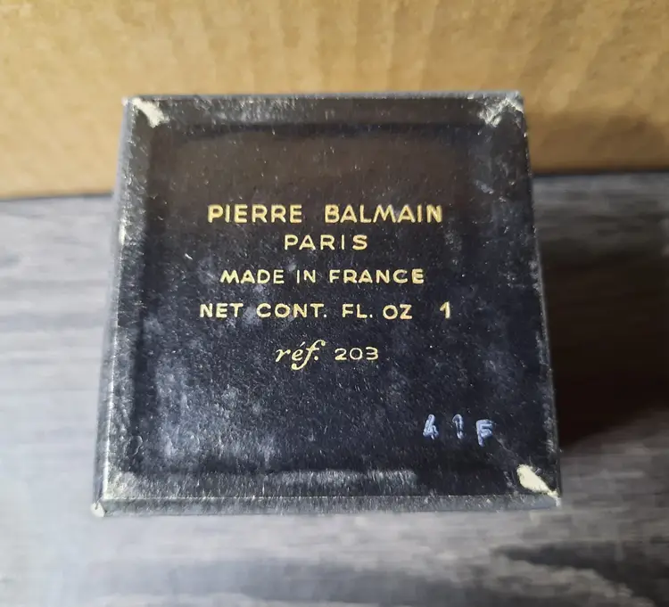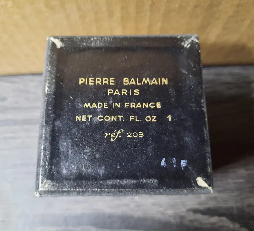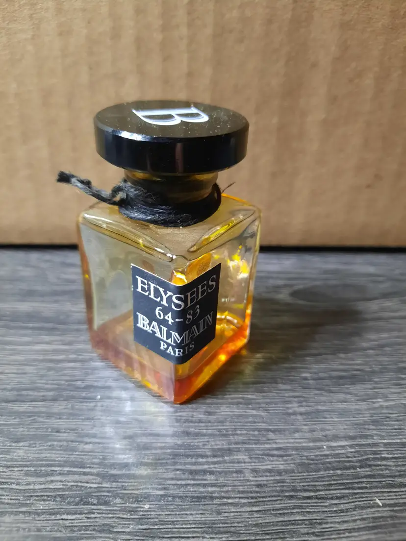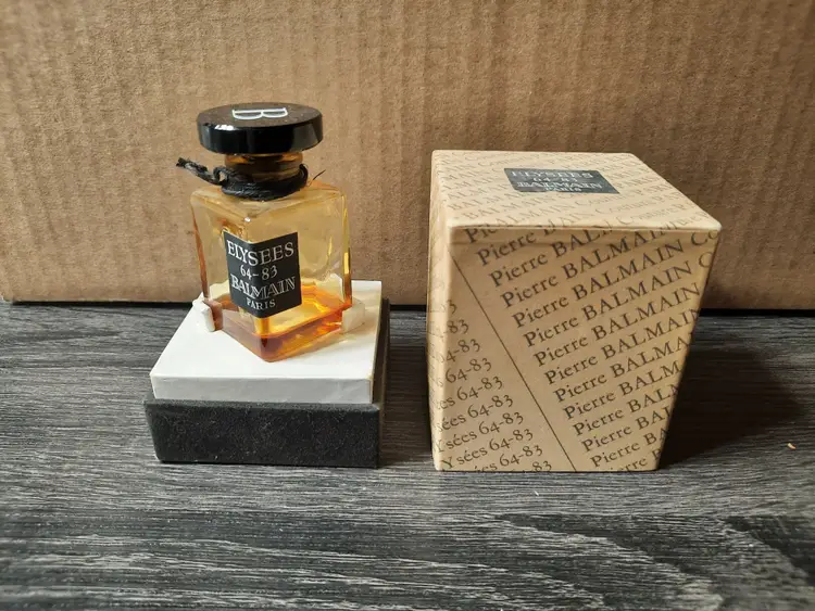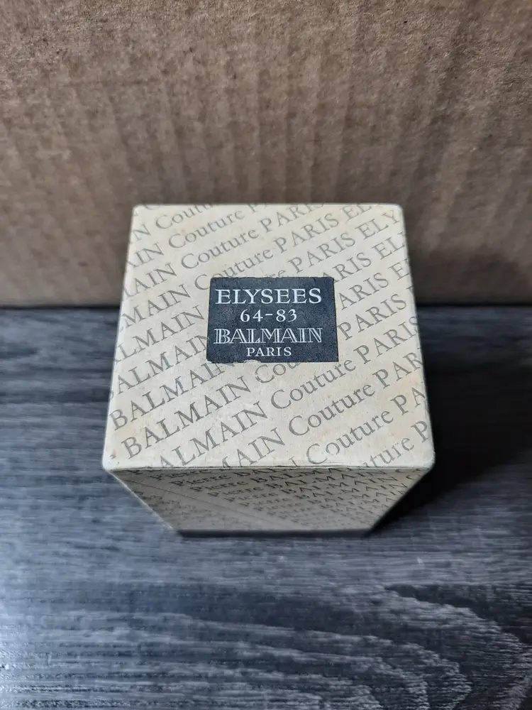 This is a rare find! Vintage Élysées 64-83 perfume by Pierre Balmain with the original box. Made in Paris France. 1 fl oz glass bottle retains a minimal amount of perfume. Bottom of bottle stamped. Original box is in very good pre-owned condition, considering the age.