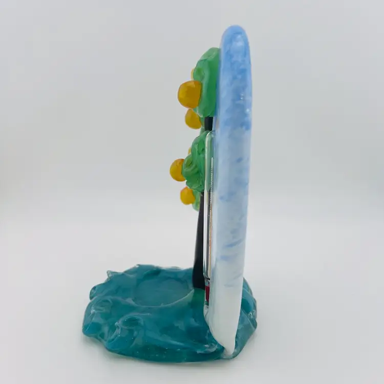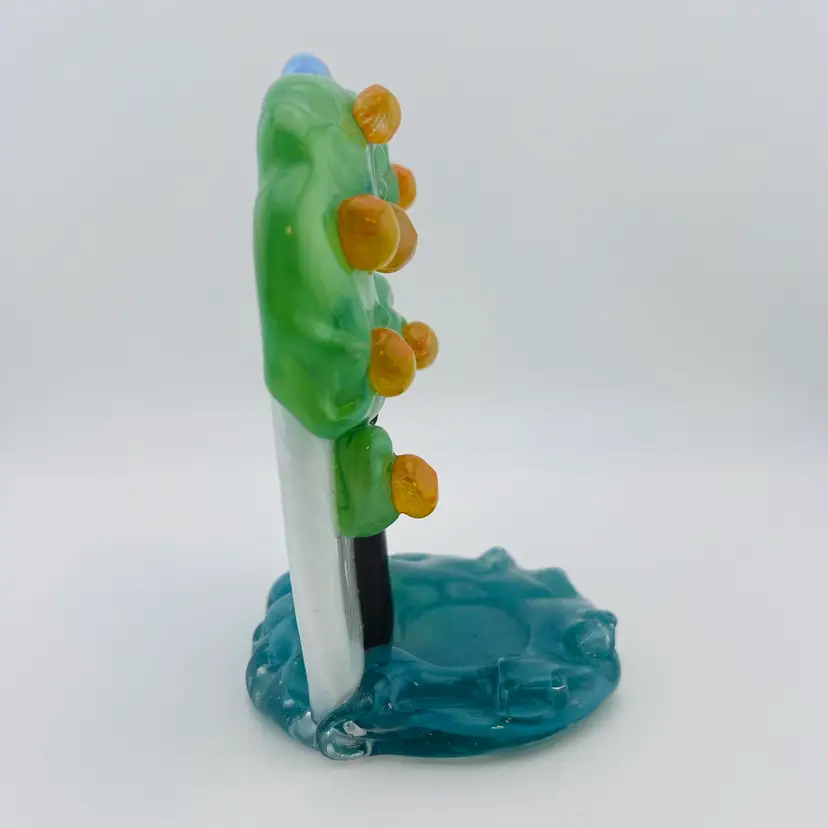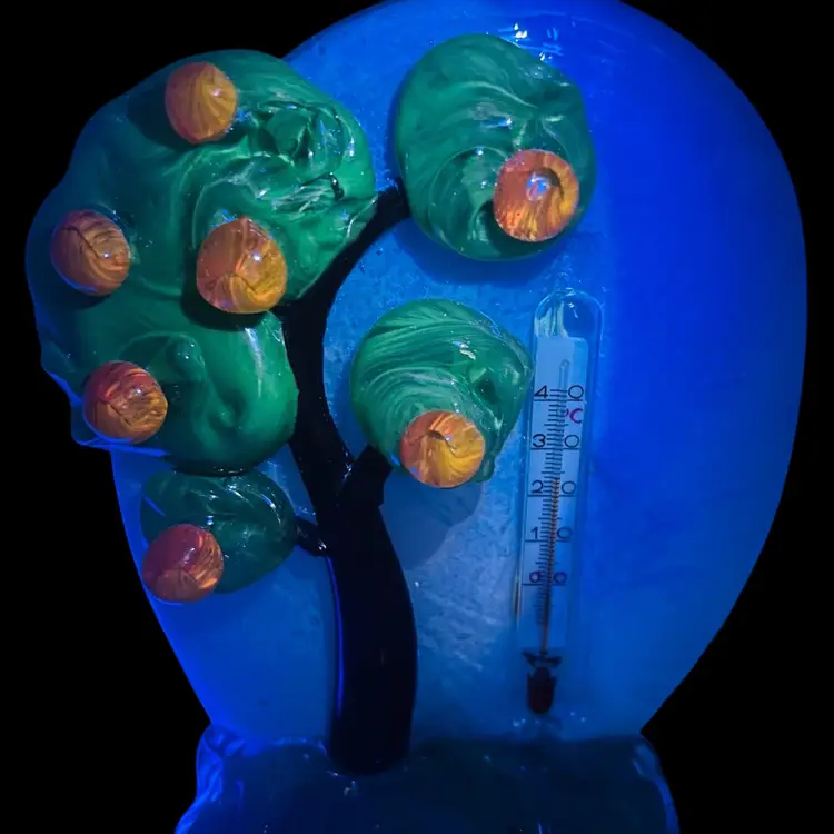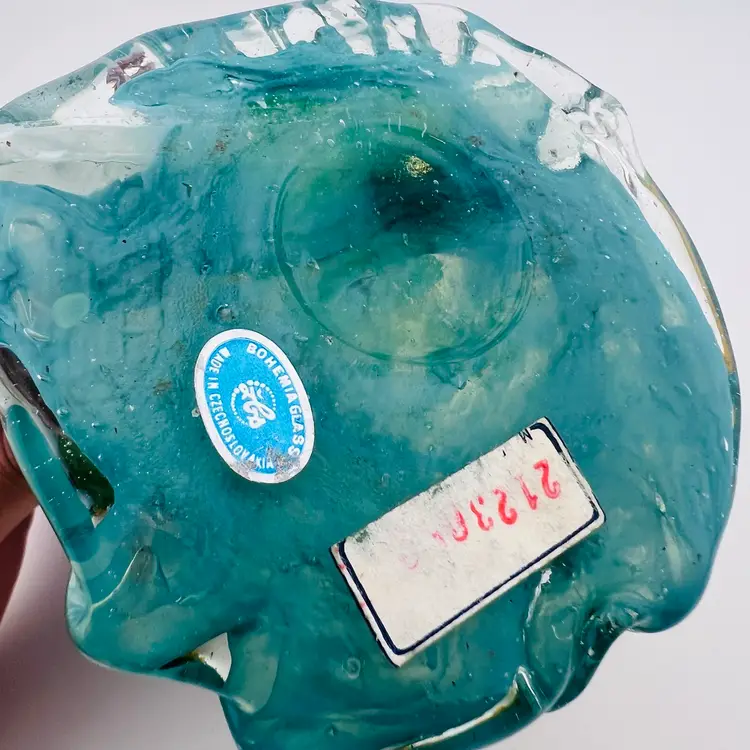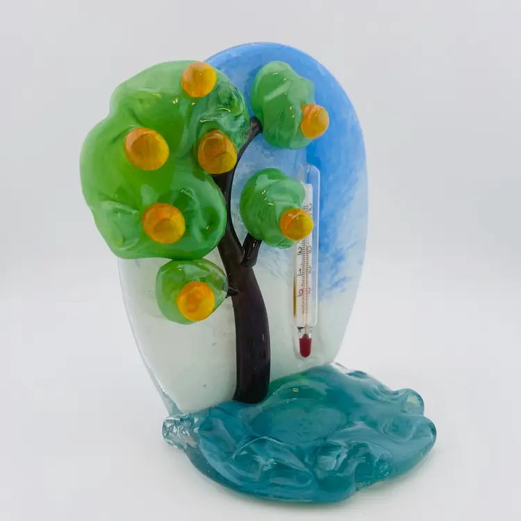 This is a stunning piece, very hard to find! Made by Zelezny Brod glassworks, also known as Železnobrodské Sklo. Thermometer appears to be working, but keep in mind that it is in Celsius. Looks to have a spot for a tea light or air plant