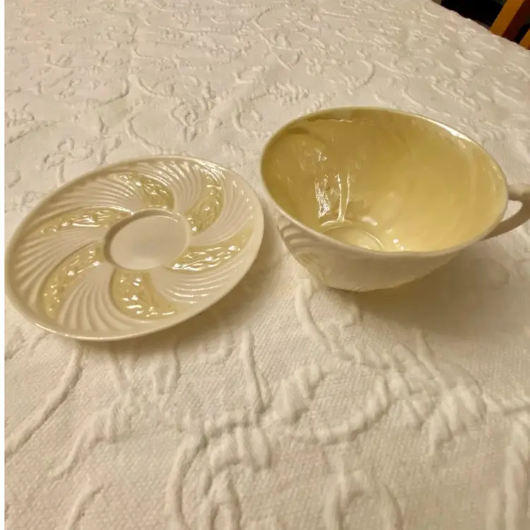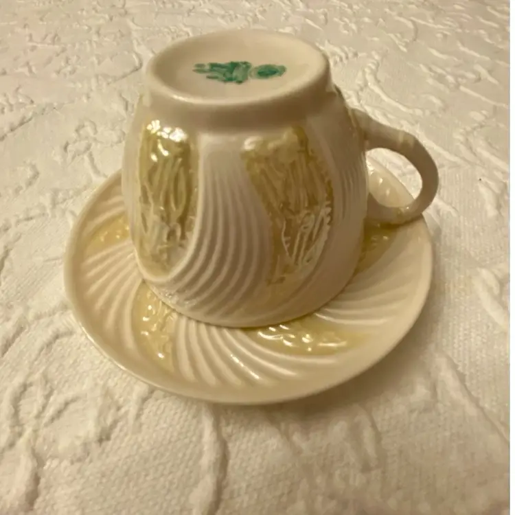 BEAUTIFUL!!! This is an opportunity to own an enchanting and highly collectible VINTAGE IRISH BELLEEK TEA CUP AND SAUCER in like new condition! This does not look like it was ever used—it is in perfect condition with no chips, cracks or crazing.