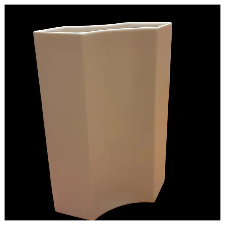 This is a rare vintage Rosenthal white porcelain vase, standing 9 inches tall. The vase features a glazed and matte finish, making it a unique piece for any collection. Made from high-quality porcelain, this vase is perfect for displaying flowers or as a decorative item. It is in excellent shape and will definitely add a touch of elegance to any room. I've never seen another Rosenthal vase of this design and height. I have seen one other that was only 5" tall, and that is the sum total of these vases that I have been able to find. There is a glazed finish on the concave curved sides, the pointed ends are matte. The measurements on this vase are 9 inches tall, 6 1/2 inches long, and 3 inches wide (at the widest point). It is a really beautiful vase and VERY RARE.