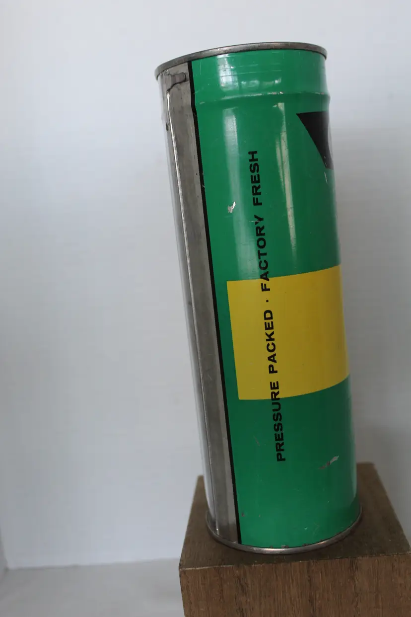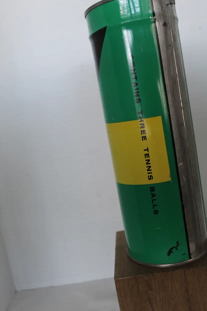 A vintage pressurized metal Slazenger tennis ball tin featuring 'Nylon Armoured' branding and U.S.L.T.A. approval, likely dating to the 1960s or early 1970s. This unopened 'factory fresh' can is a rare find as it retains its original key-wind opening mechanism and attached key, showcasing classic mid-century sports graphics. Can contains 3 tennis balls.