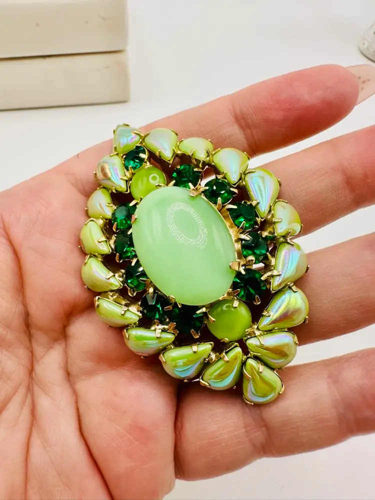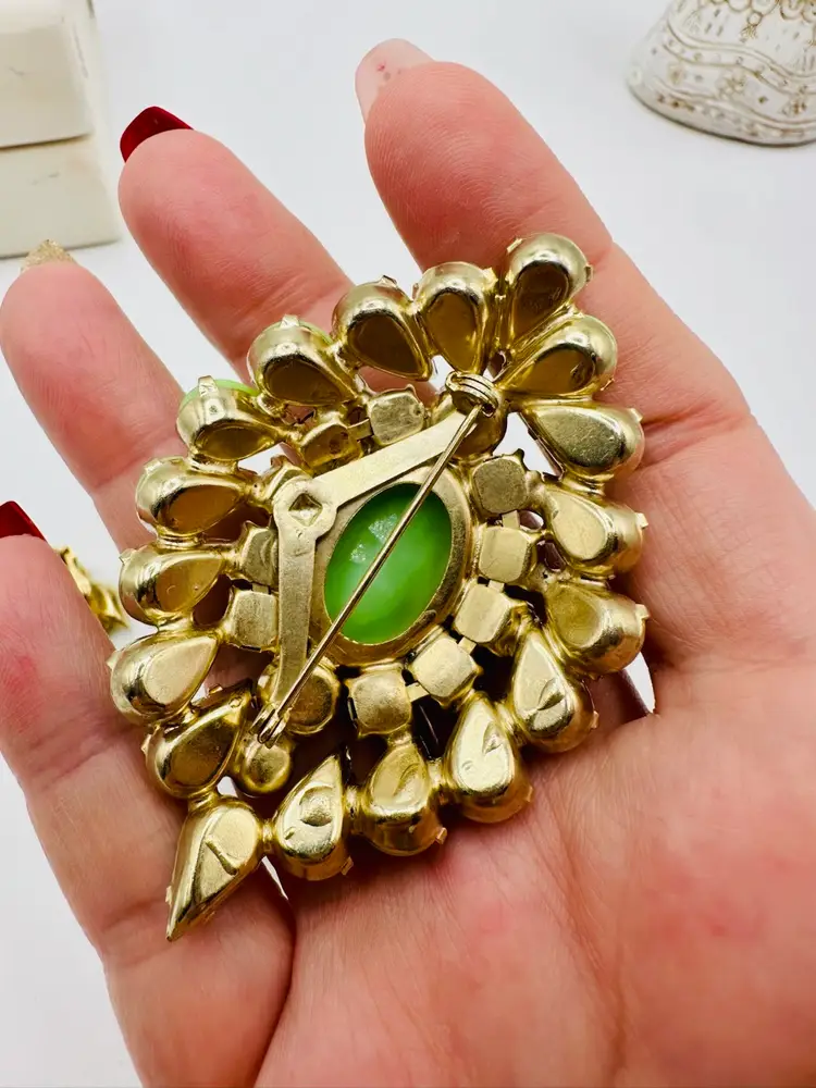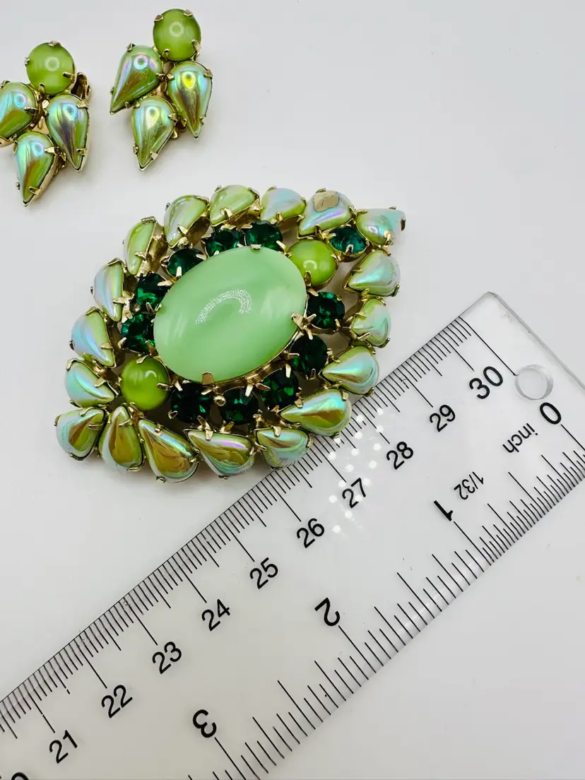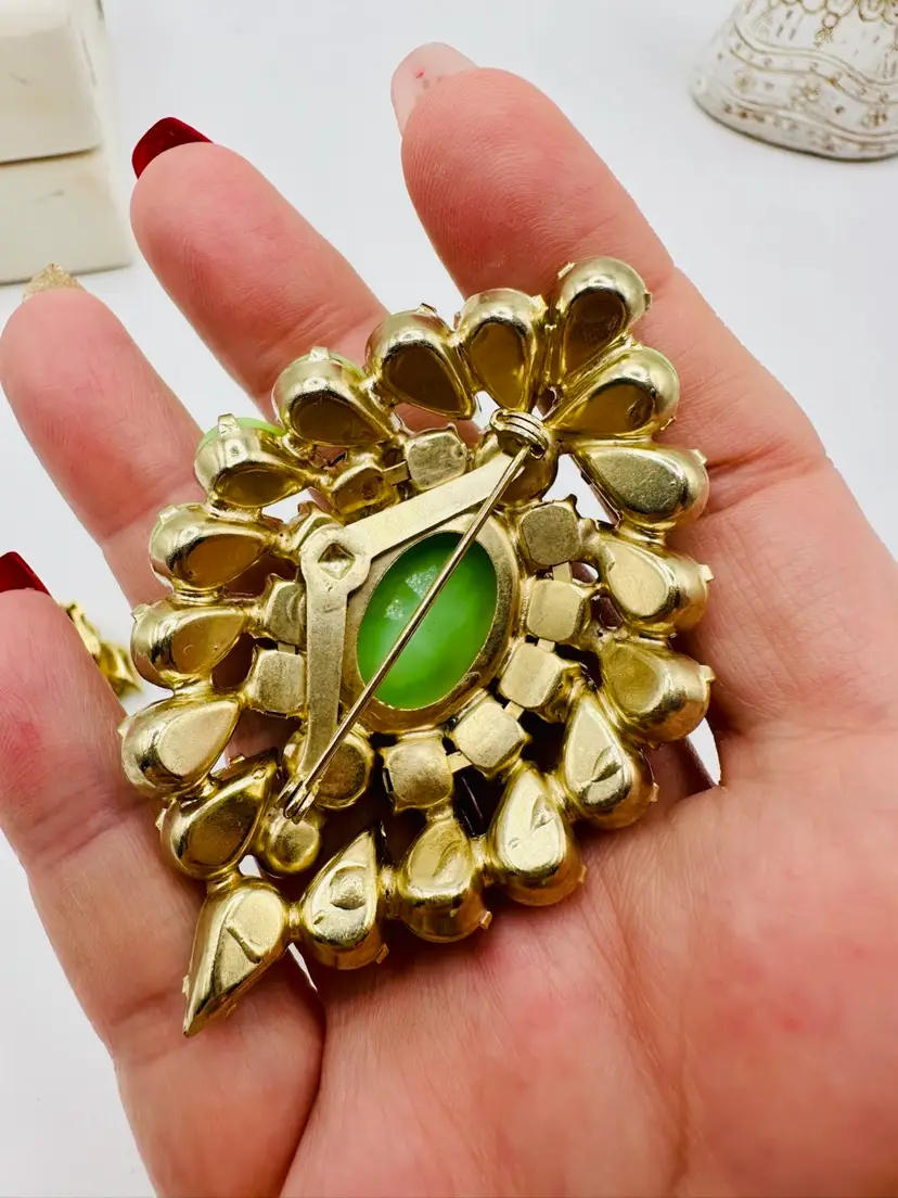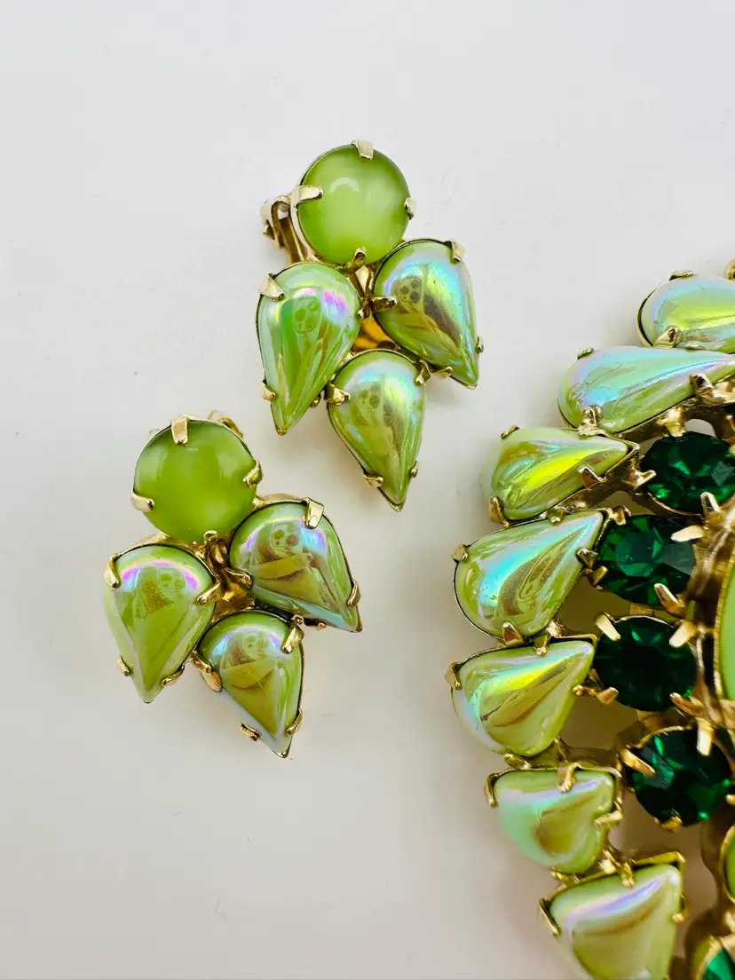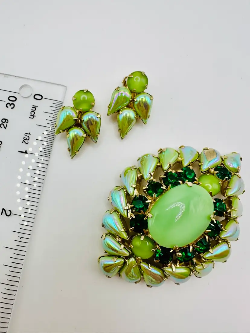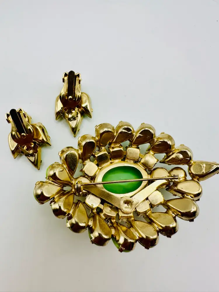 Incredible Demi Parure set. Brooch measures 3 inches. Earrings are clip. Great collectors set.