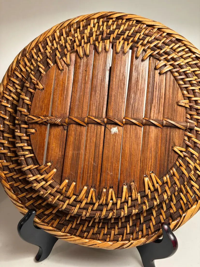 This product is a set of round, sturdy bamboo plate chargers, measuring 13 inches in diameter. The chargers are woven from rattan, adding a beachy and natural theme to your dining experience. Perfect for all occasions, these brown chargers are not only stylish but also easy to clean and maintain. Made from high-quality material, these plate chargers are a unique and functional addition to your dinnerware collection.