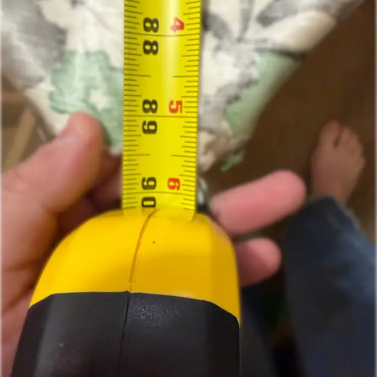 Measures 160” in total length and the other side is shine and it has something on it and there is tape on it and I found one stain not sure if there is more.