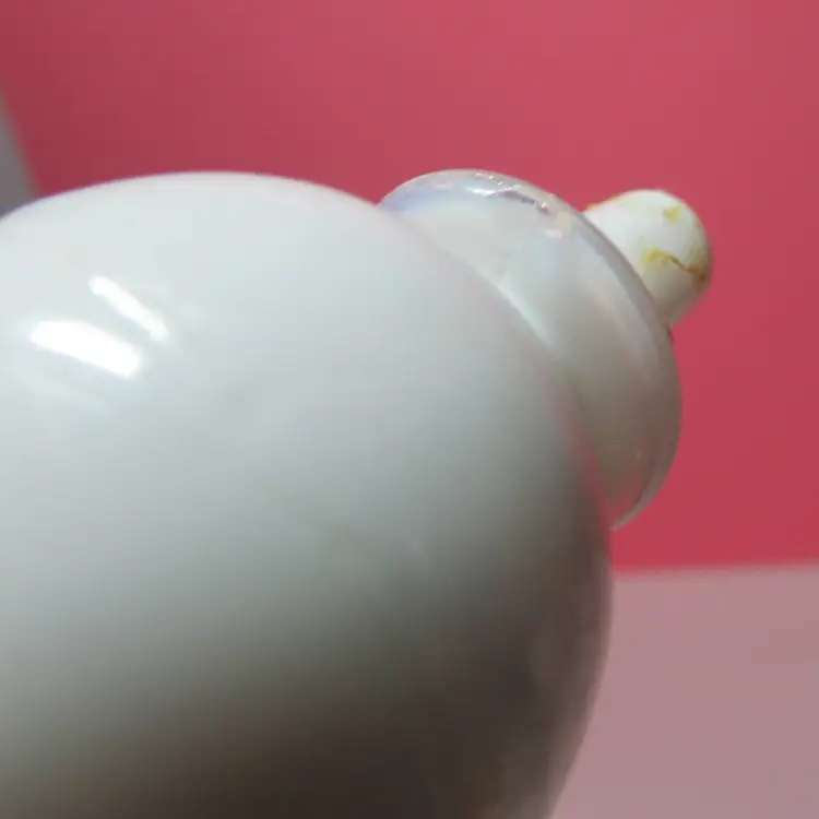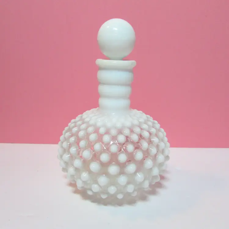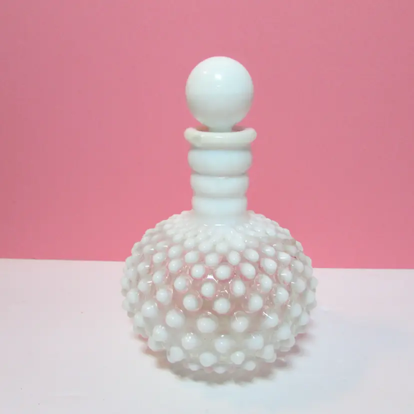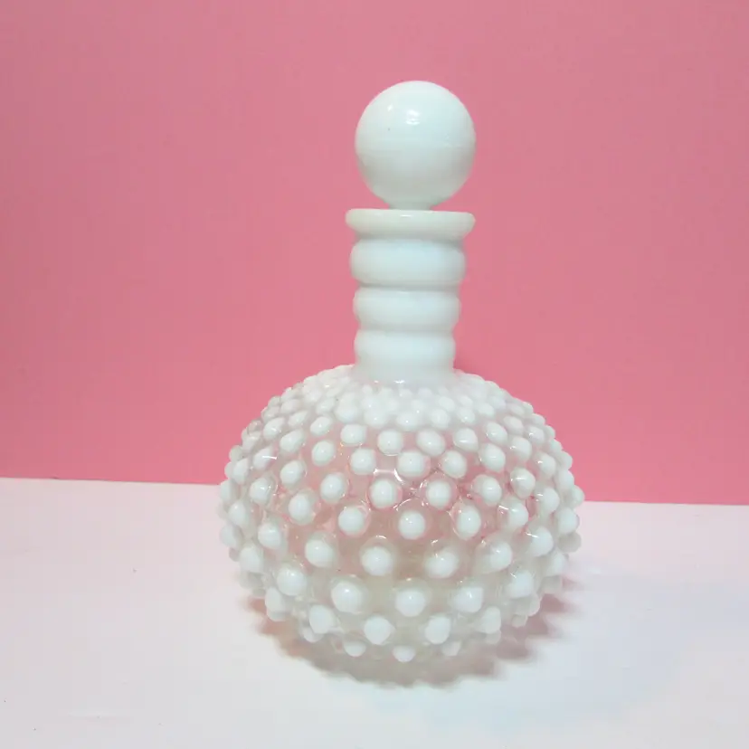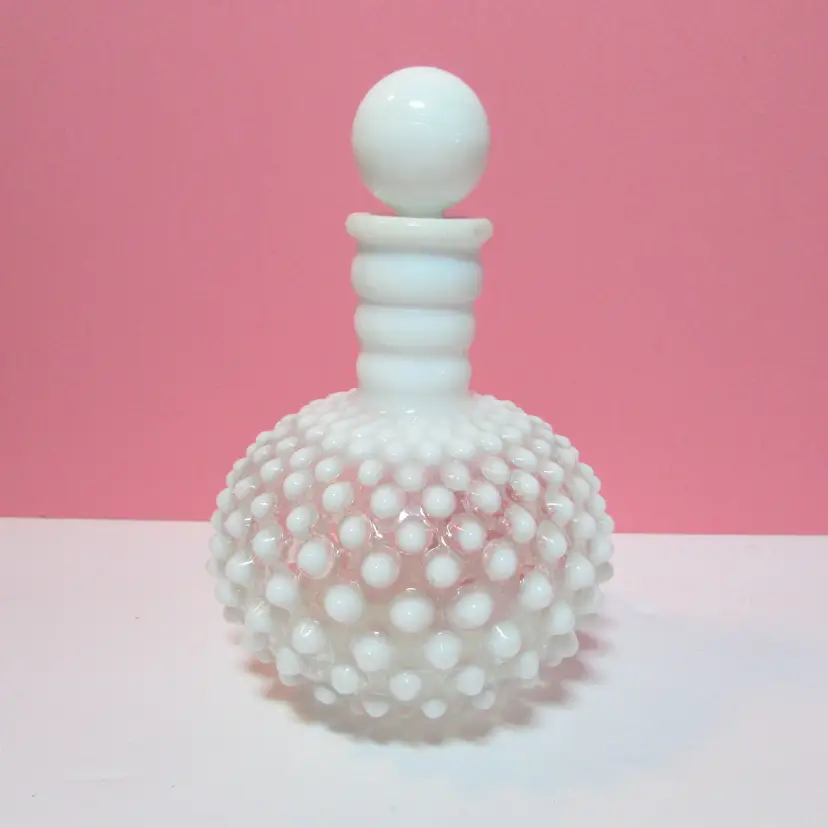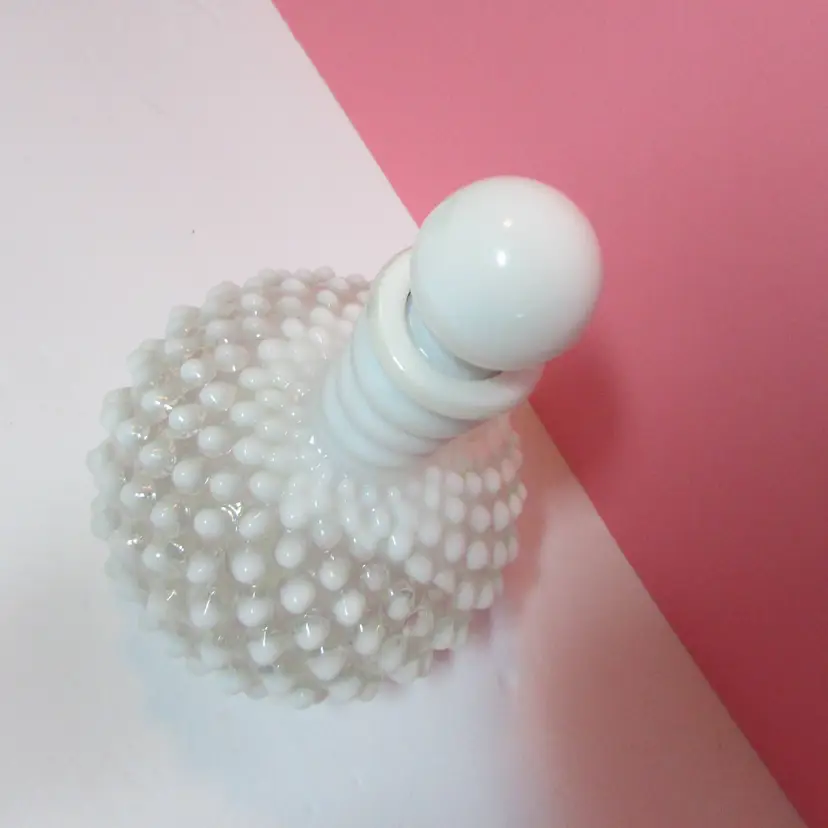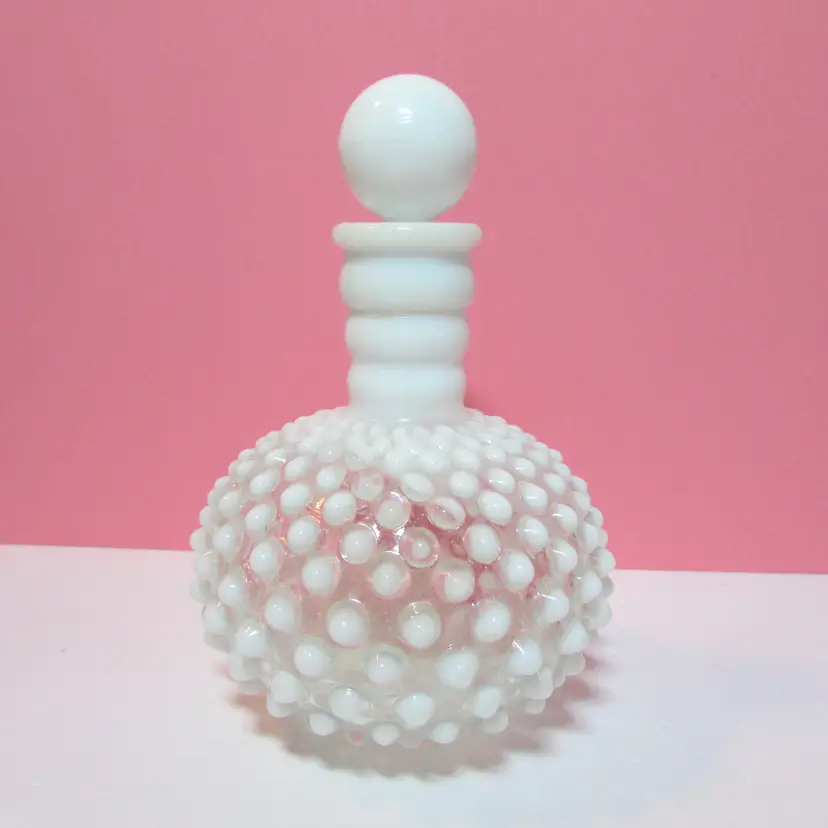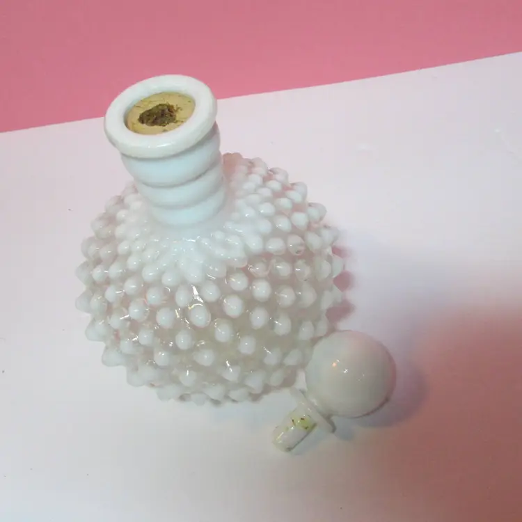 This lovely piece has a small chip on the lid and the cork is stuck in the bottle. Still a beautiful piece to display, it is about 6" x 4 1/2".