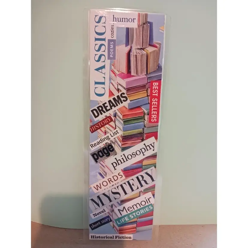 I create bookmarks and vision boards from words and pictures cut out of magazines. Some of the magazines date back to the 1940s! It is my goal to use only recycled found materials, and not buy anything. Occasionally I can't find a word, like NikNax, and have to cheat and type it and print it out.