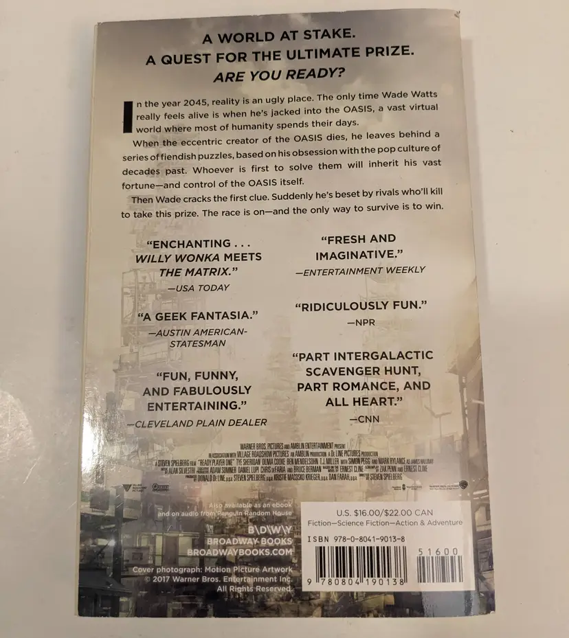 In the year 2045, reality is an ugly place. The only time Wade Watts really feels alive is when he’s jacked into the OASIS, a vast virtual world where most of humanity spends their days. When the eccentric creator of the OASIS dies, he leaves behind a series of fiendish puzzles, based on his obsession with the pop culture of decades past. Whoever is first to solve them will inherit his vast fortune—and control of the OASIS itself. Then Wade cracks the first clue. Suddenly he’s beset by rivals who’ll kill to take this prize. The race is on—and the only way to survive is to win.