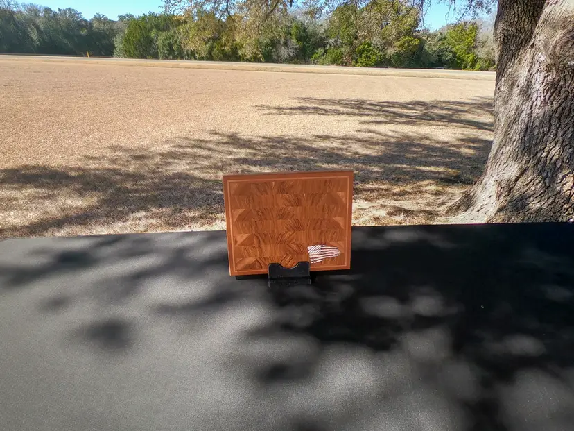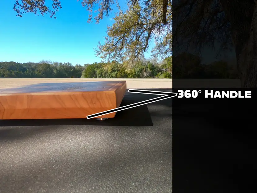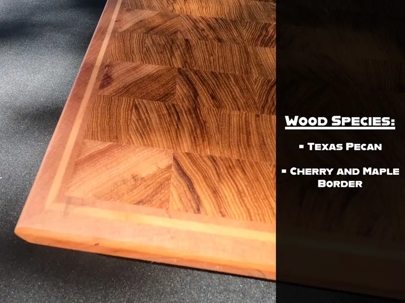 The Build The Wood: Locally sourced Central Texas Pecan with a structural border of Maple and Cherry. The Inlay: Genuine silver-leaf, meticulously sealed for safe, everyday food contact The Surface: 100% end-grain orientation—the professional choice for blade longevity and durability. The Hardware: 1" stainless steel feet for stability and hygiene. The Finish: Deep-saturated overnight in a mineral oil bath and finished with a hand-applied food-safe wax to lock in moisture.
