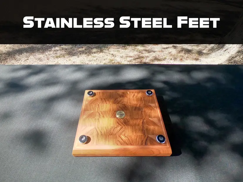 To give it a stable, "pro" feel on the counter, I’ve mounted the board on 1" stainless steel feet. These elevate the board to allow for proper airflow during drying and provide a rock-solid foundation that won’t budge during heavy prep.