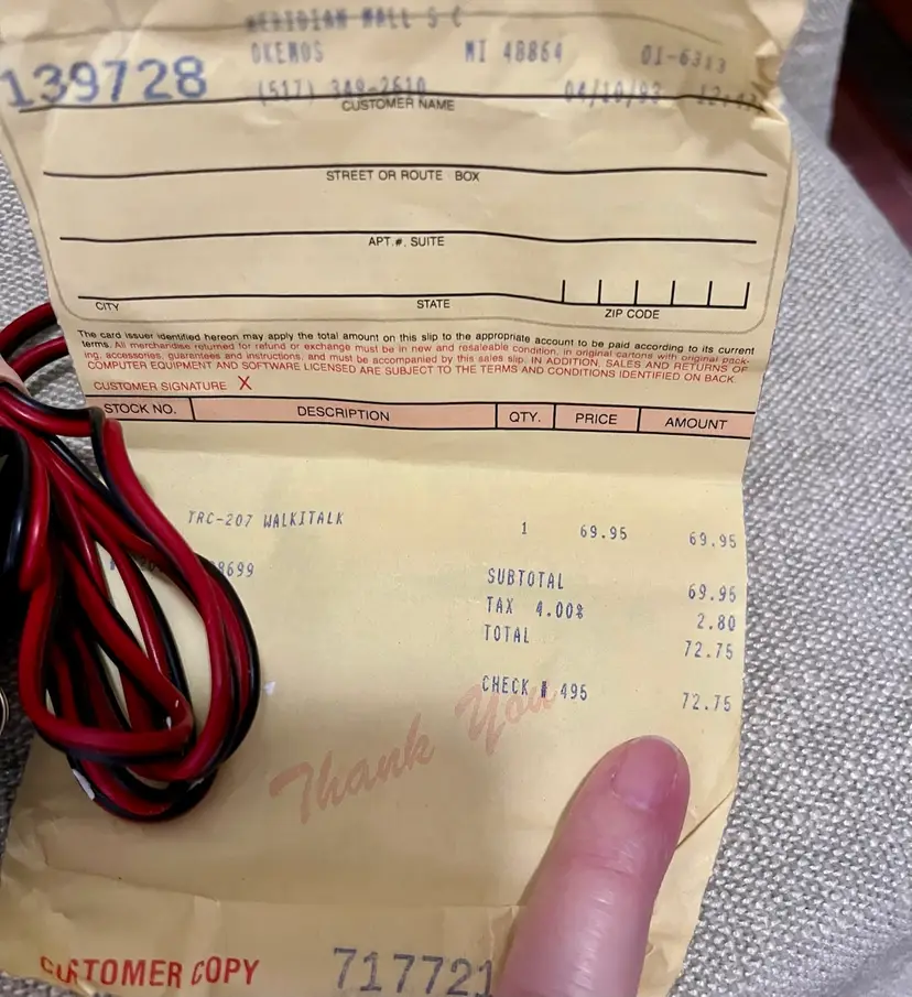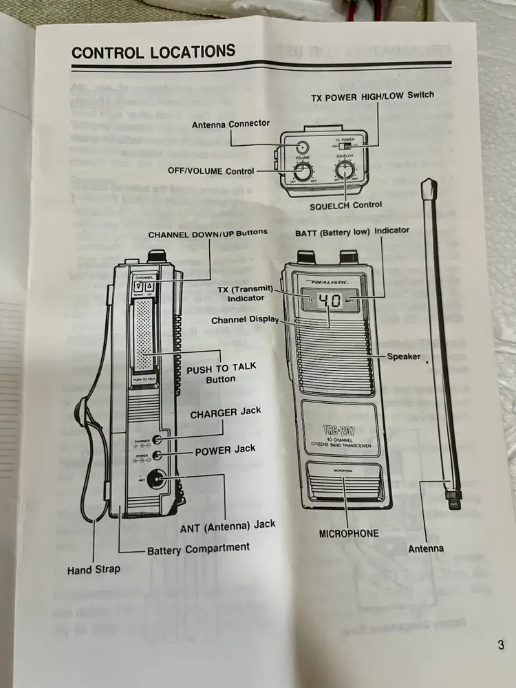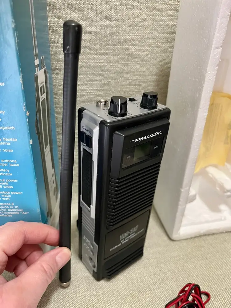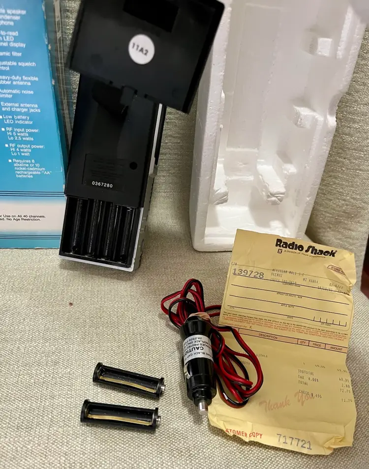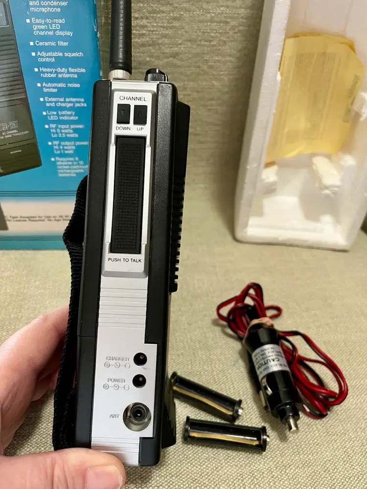 1989 Realistic TRC-207 40 Channel Portable CB Radio Walkie Talkie 5 Watt 2 Way with Original box, paperwork, and purchase receipt of 4/10/1993 for $72.75. This is UNTESTED. Buyer can decide by looking at the multiple photos its condition.