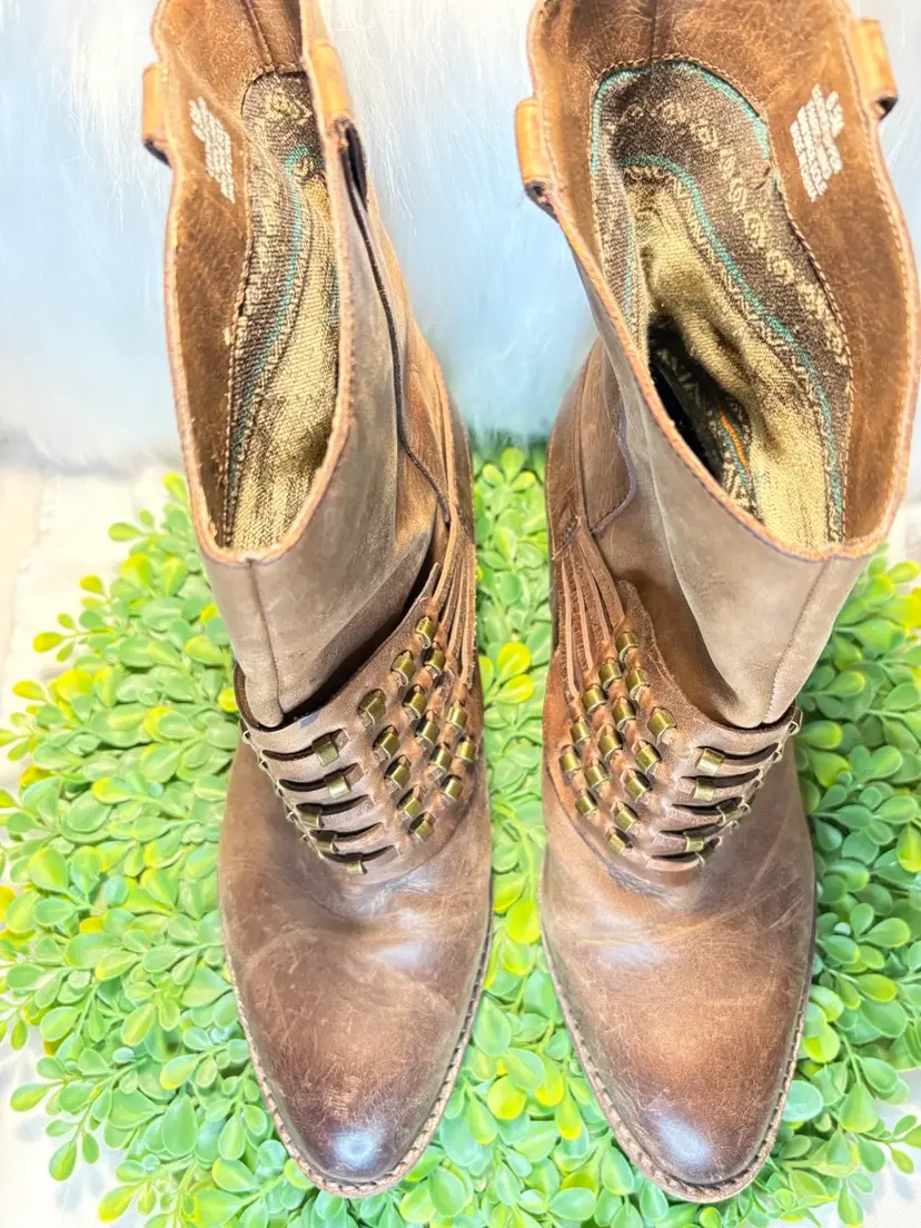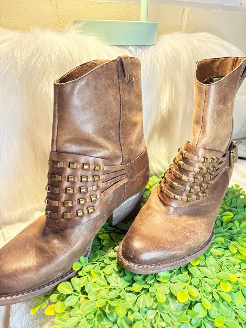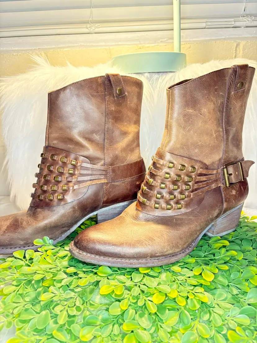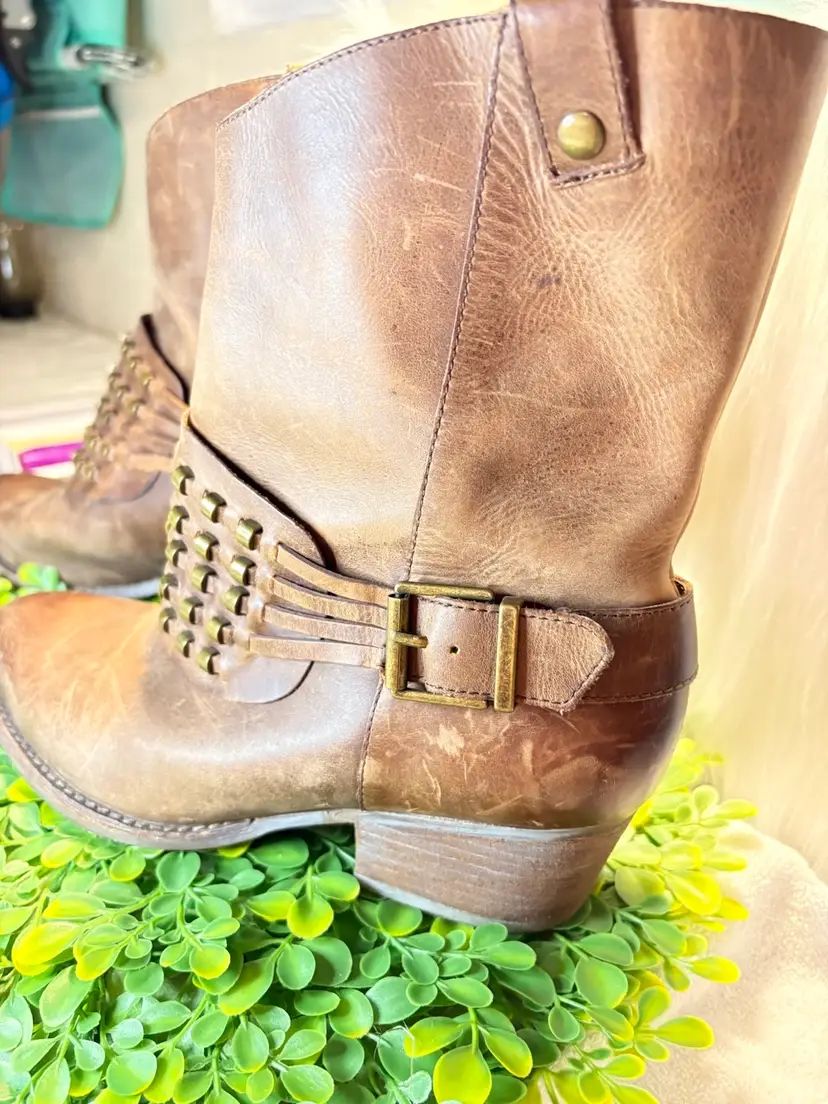 Reba Women’s Leather Brown Studded Boots Size 6.5M NWOT