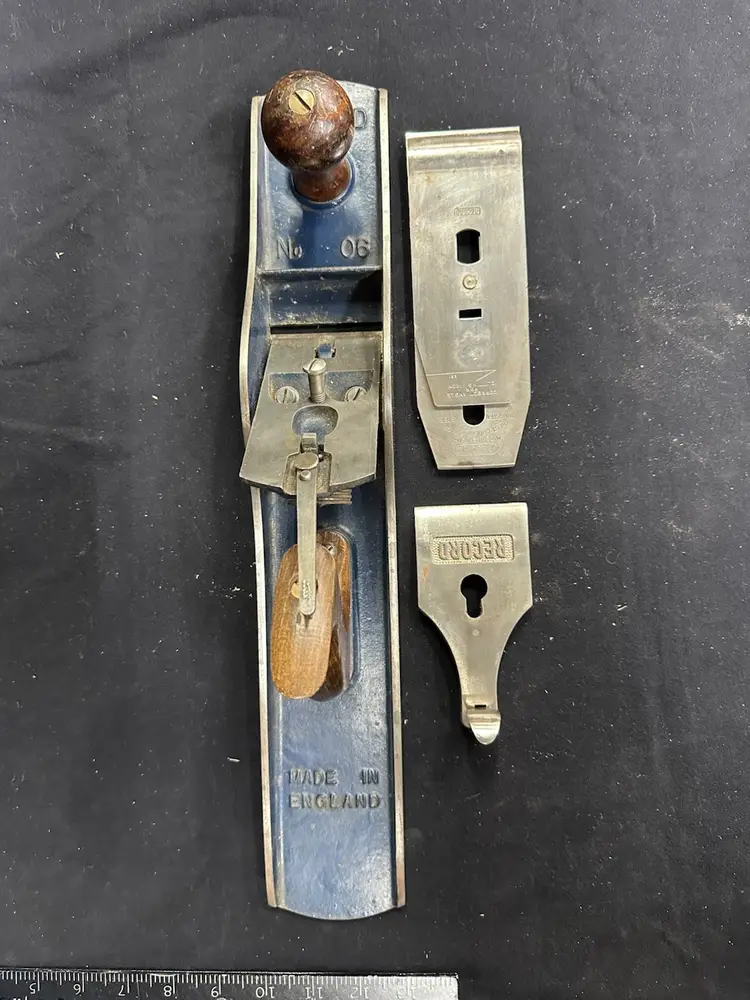 Record #6 fore plane in excellent condition. The casting of this plane is much heavier than its Stanley counterpart resulting in a much heavier plane. This plane comes from a collection of planes used in a hand tool woodworking school where it was in daily use. The blade on this plane is in excellent condition with no rust or pitting. To reduce shipping costs the front tote will be removed for shipping.