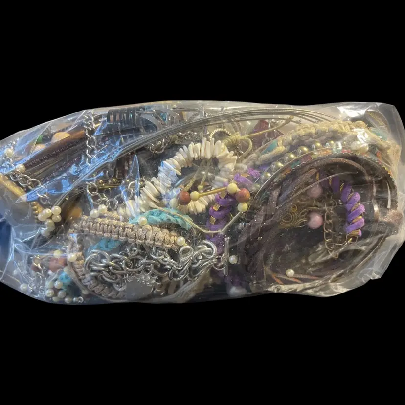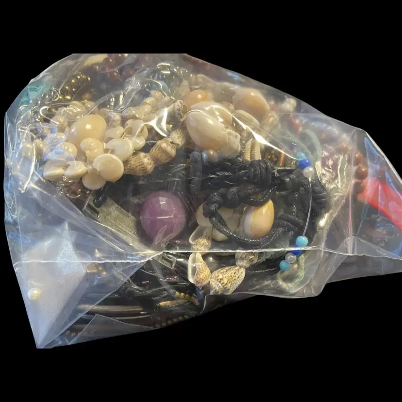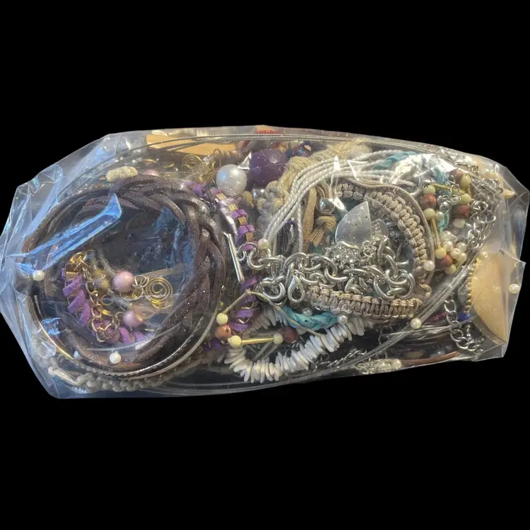 2.99 lbs of recycled craft jewelry! There are some wearable items in this bag, though mostly broken and worn! There should be NO precious metals or stones included this bag!! If you find something congrats! Sold as is for crafting and creating!!