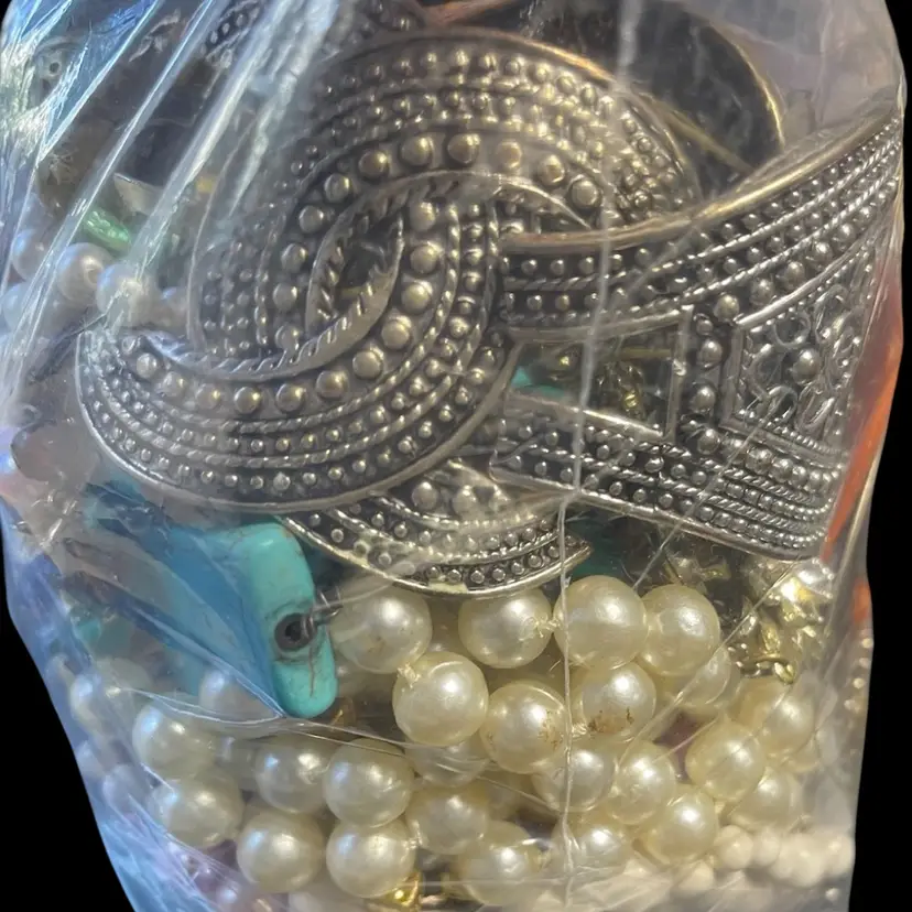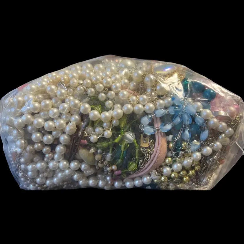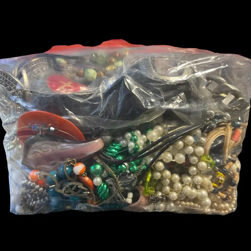 3.8 lbs of wearable and broken jewelry pieces for crafting and creating! There should be no precious metals or stones included! Sold as is for crafting and creating!