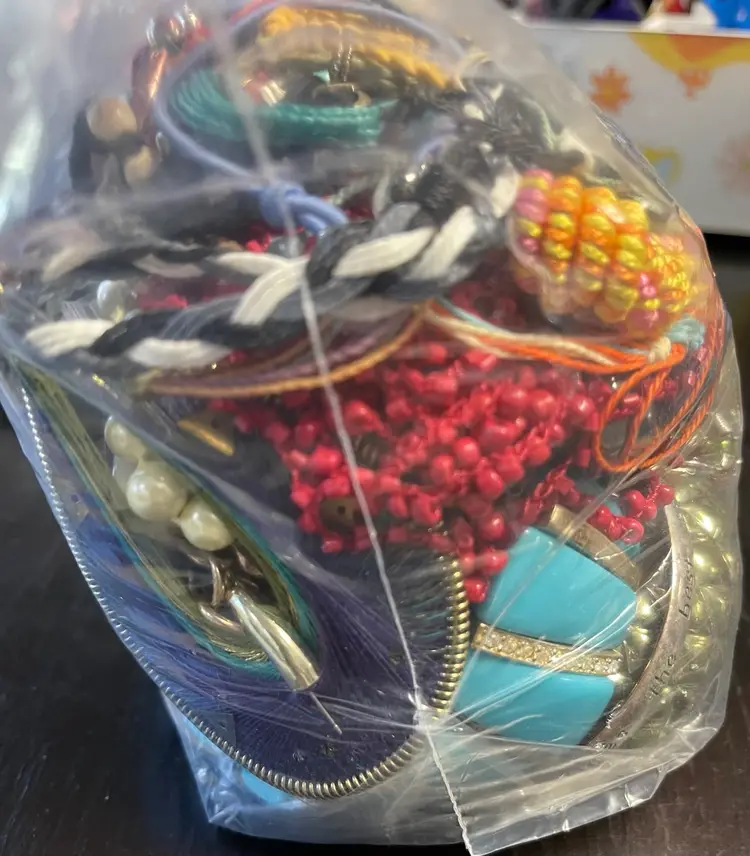 3.3 lbs of Recycled jewelry for crafting! There are a lot of pura vida bracelets in this bag! There are also some wearables in this bag! There should be NO precious metals or stones included!