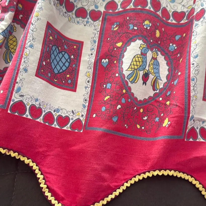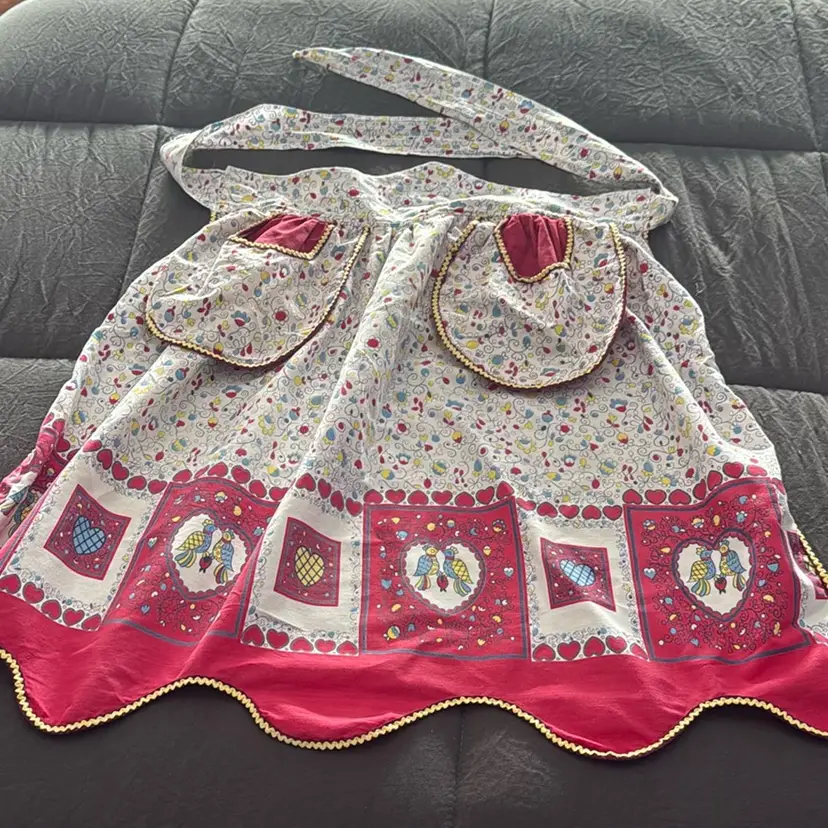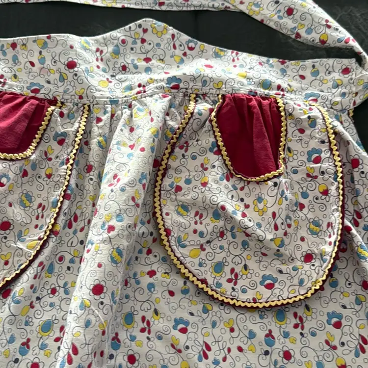 23” long and front waist panel is 15” recently laundered and (badly) pressed by me