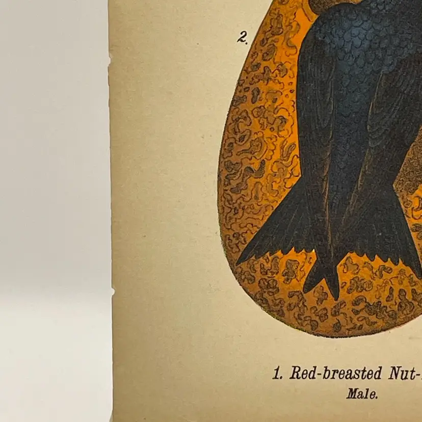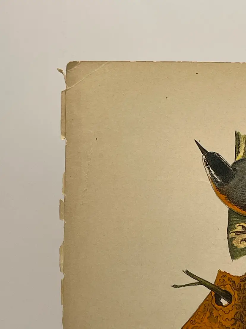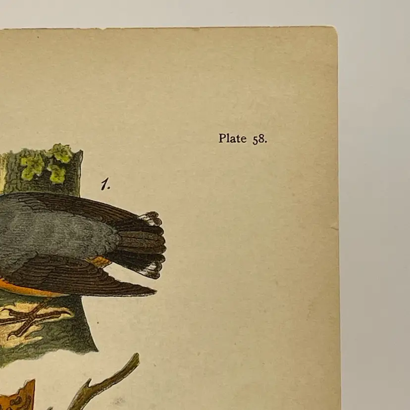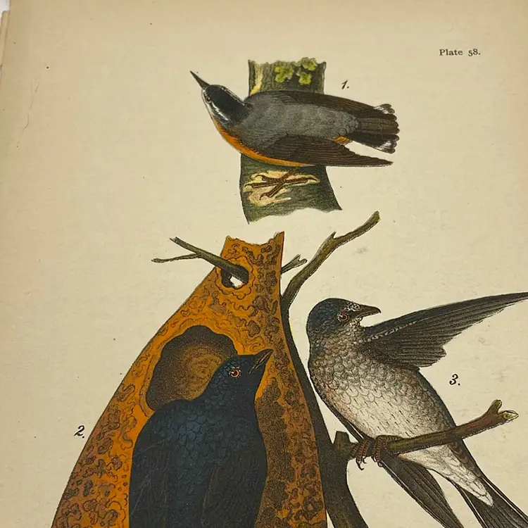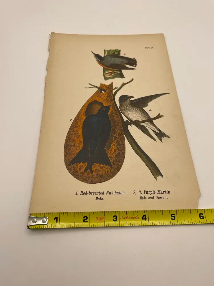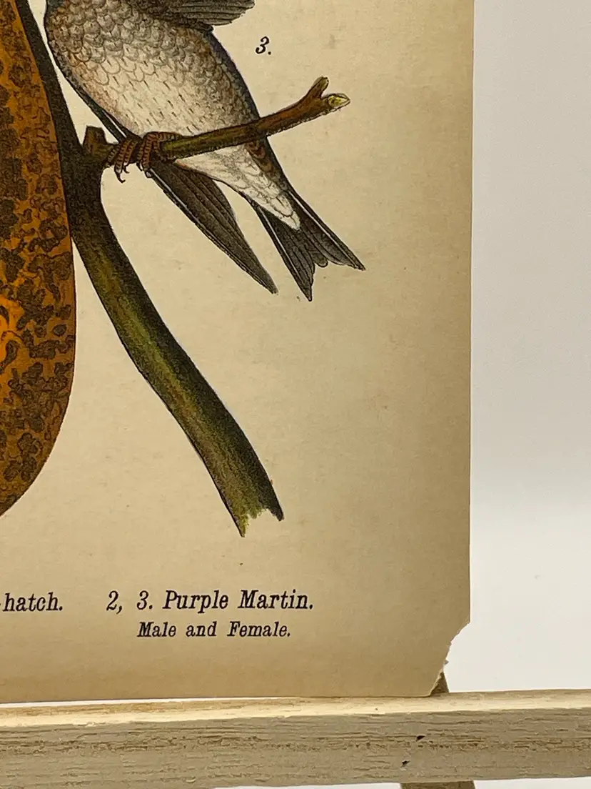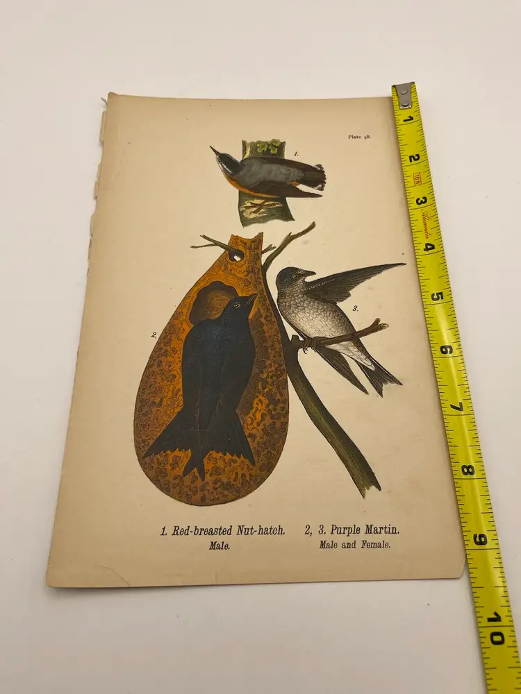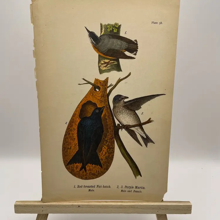 “Red-Breasted Nut-Hatch”/“Purple Martin”, c. 1890 Color Plate Engraving Plate 58, From An Antique Book, 6” X 9.5” Please see pictures for measurements.