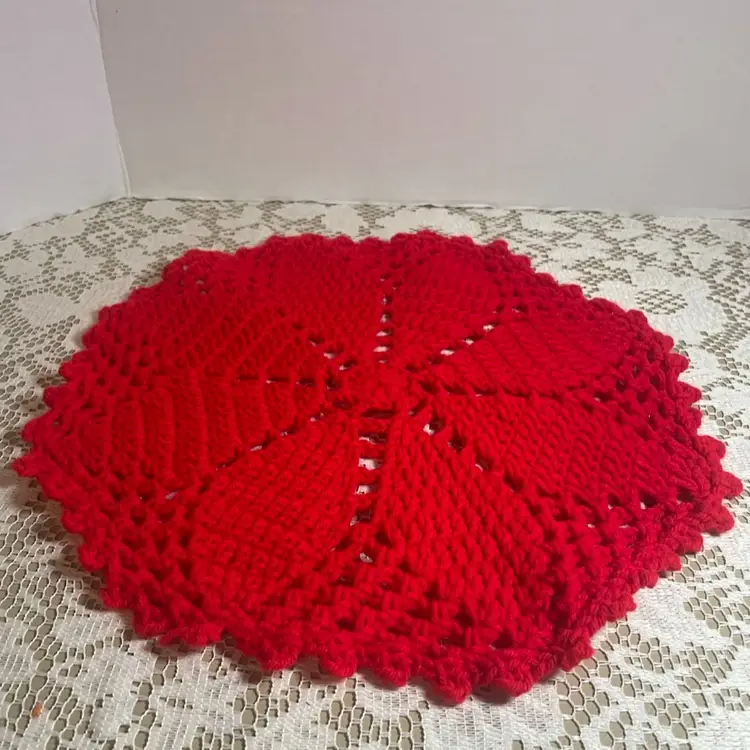 Red crocheted doily