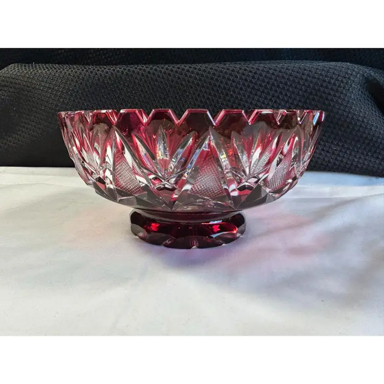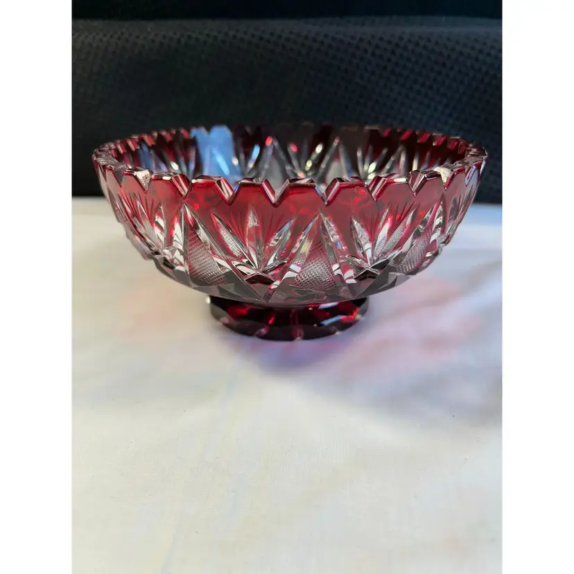 Beautiful Red Crystal footed bowl. Measures 7" in diameter. Excellent condition - no chips or cracks.