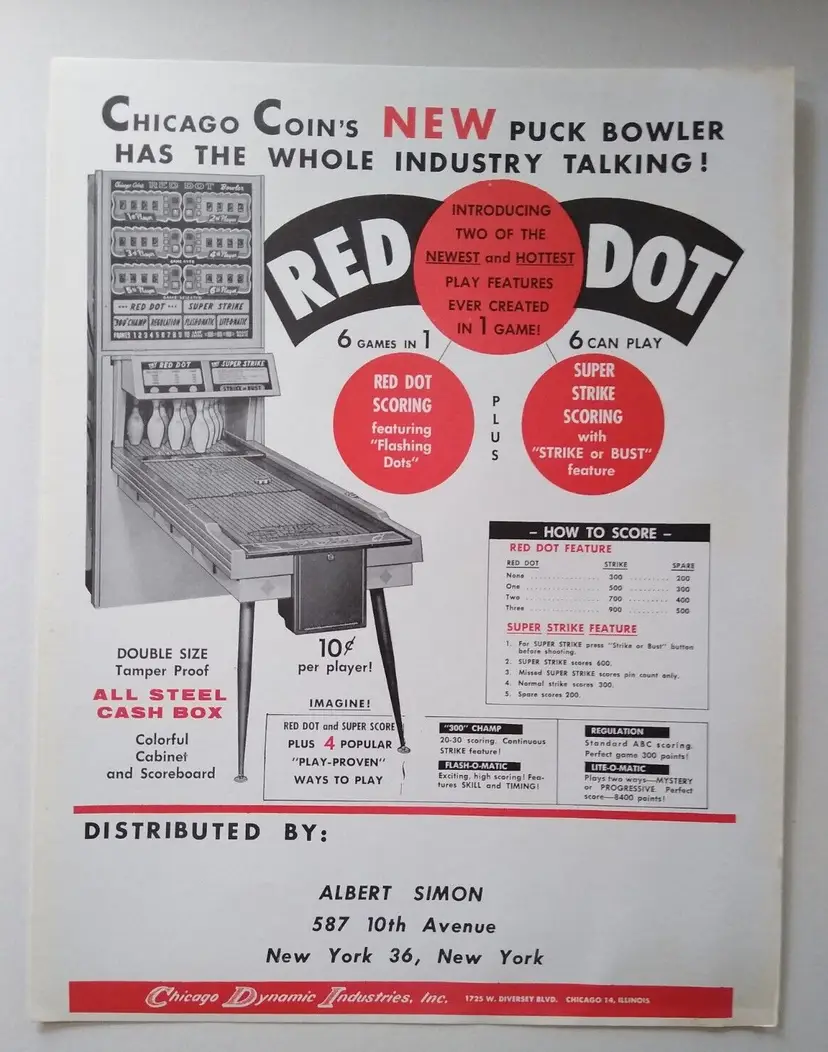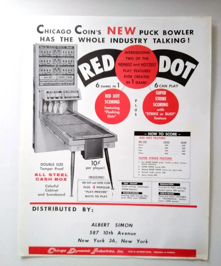 Year: 1961 Game Title: Red Dot Original/Reproduction: Original Country/Region of Manufacture: United States Arcade: Flyer
