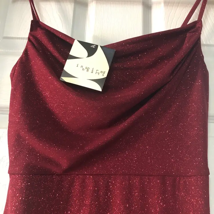Red dress Size M, formal occasion sequin polyester Inspired Hearts Beautiful bright wine red dress with sparkles, size M, new with tag, 95% polyester, 5% spandex lining