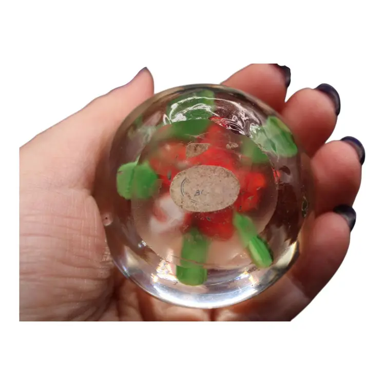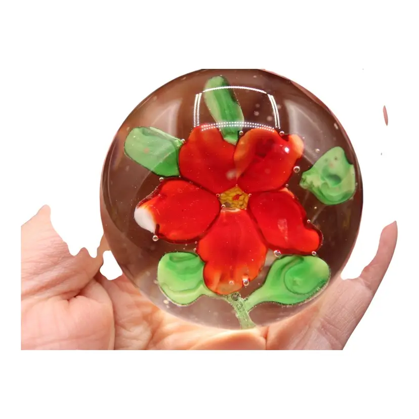 Antique Red Flower Paperweight 2 1/4”x1 1/2” 6.9oz. No chips or cracks.