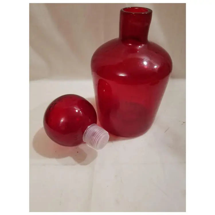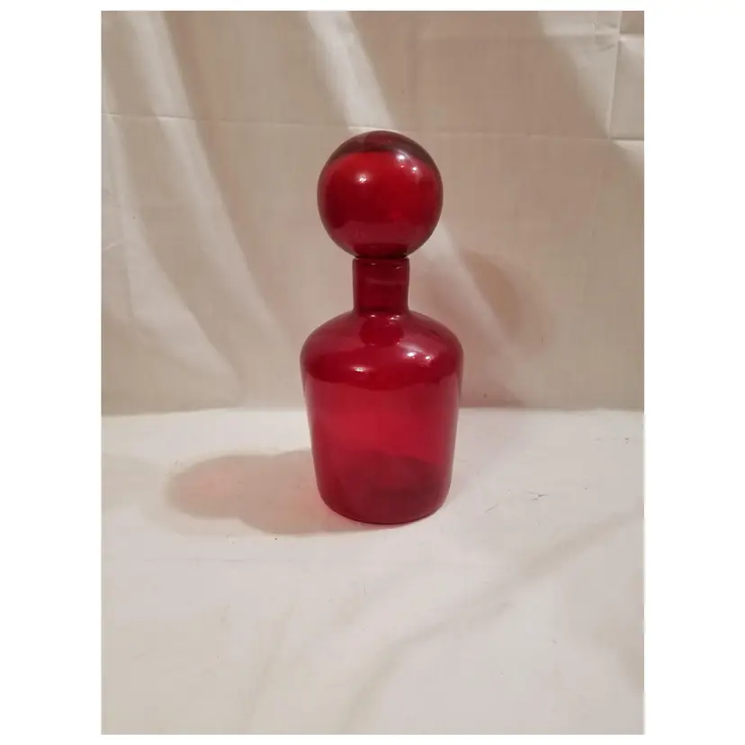 This decanter is unmarked. It has controlled bubbles throughout it and is in perfect condition. It is 10 inches tall.