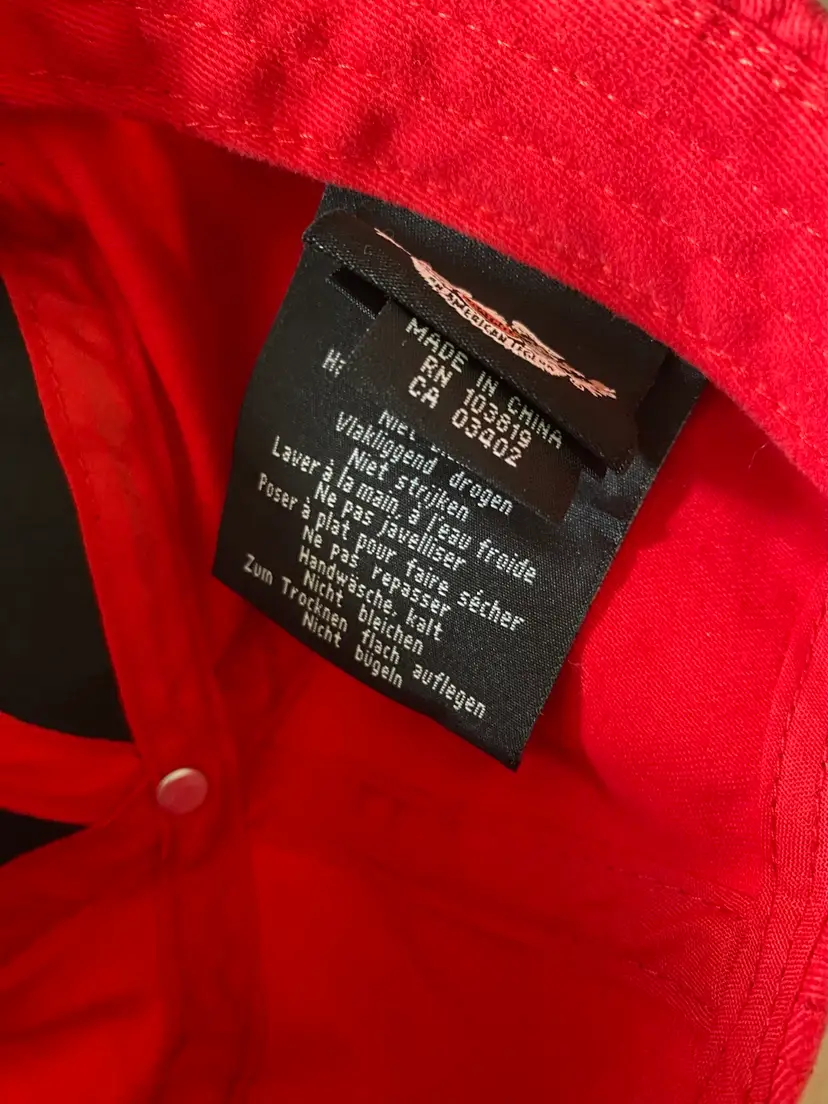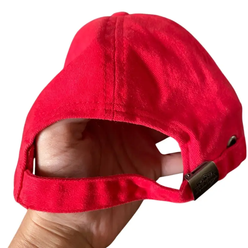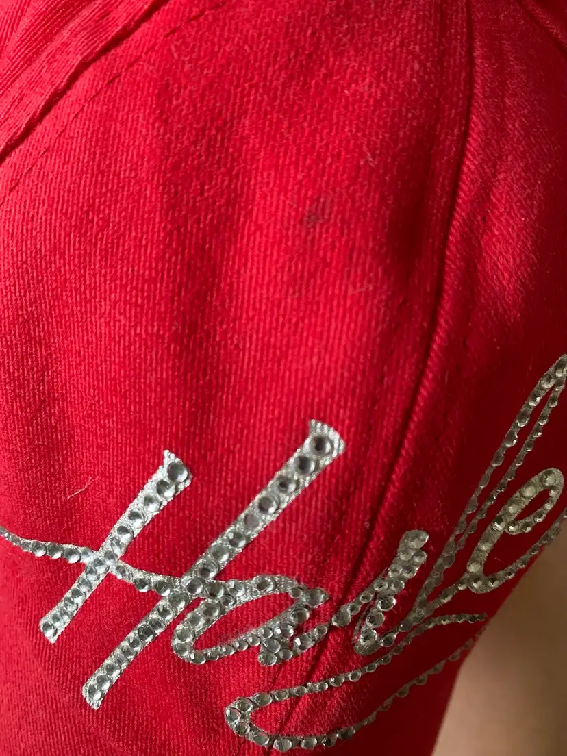 Minor stain pictured. No holes. Bright red with rhinestones.