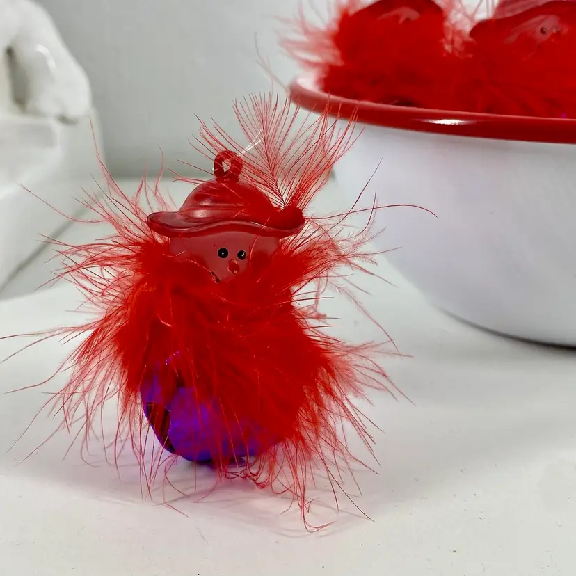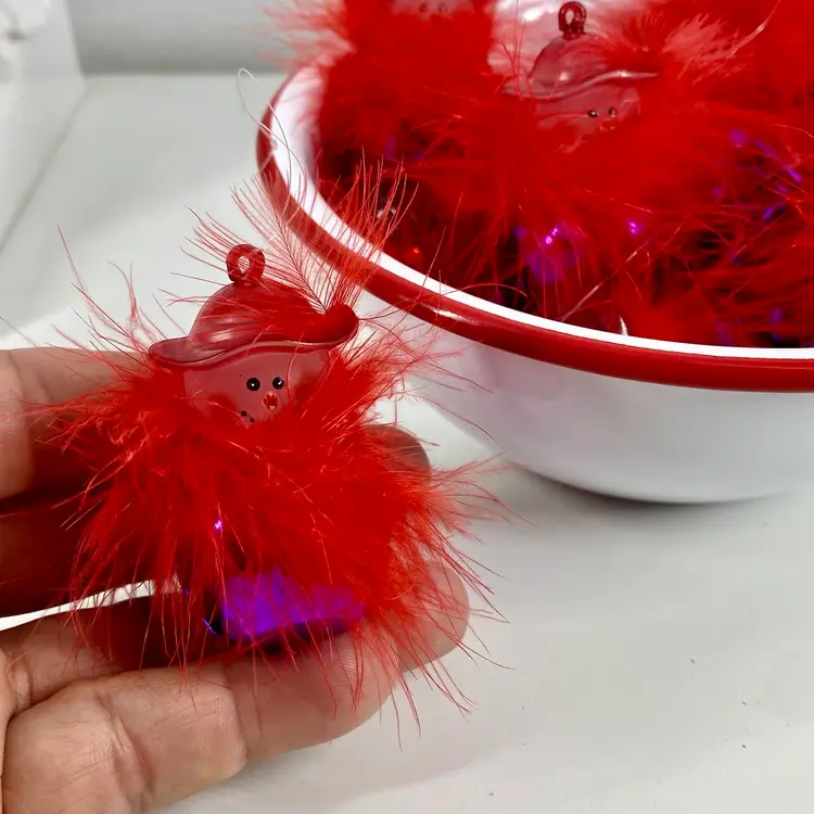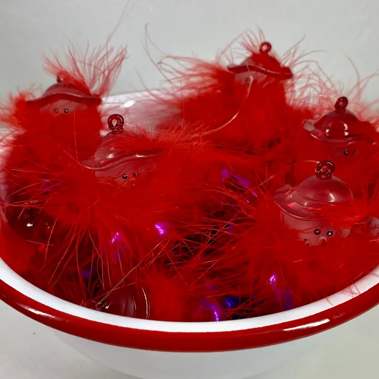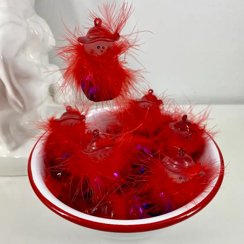 Hi... Incorparate a touch of charm and social awareness to your Christmas tree this year with this set of 12 Red Hat Society, Jingle Buddies ornaments. Featuring the cutest Snow Woman figure with a red hat and feathers. These fun ornaments are handmade and feature a tiny rhinestone detail on each of their hats and vibrant red feathers for a festive touch. Measuring at 2 inches in height and 1 inch in width, these small ornaments are perfect for decorating your tree or even as a thoughtful gift for female family members. The set includes a dozen original designs from the Jingle Buddies franchise and makes for an ideal addition to any collection of Christmas tree ornaments.
