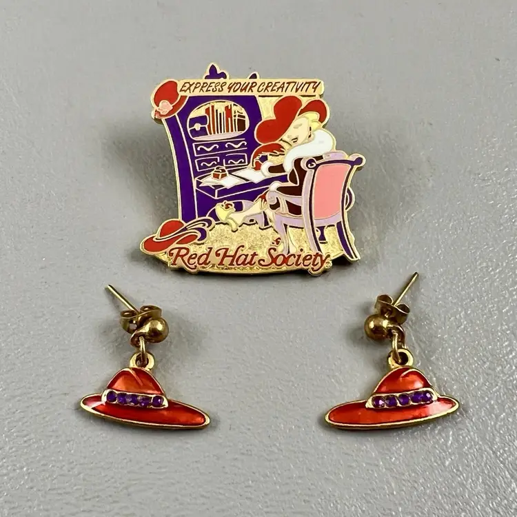 Red Hat Society Pin & Earring Set Express Your Creativity 2009 MBI Crafting