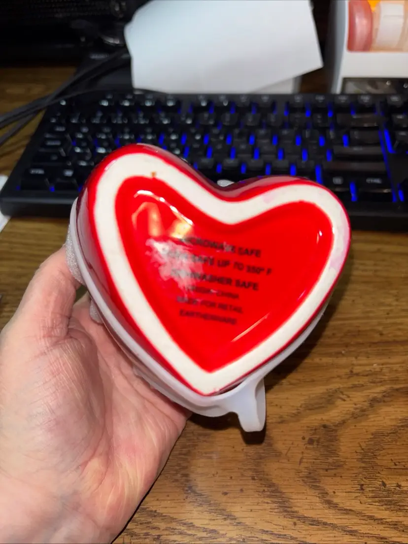 Red Heart Shaped Valentines Bowls (2) Microwave Safe Oven Safe Up To 350°F. Dishwasher Safe.