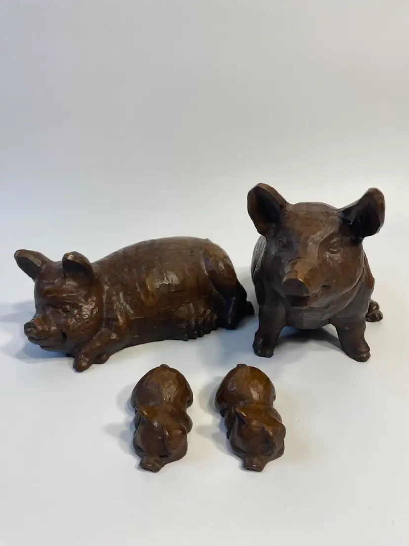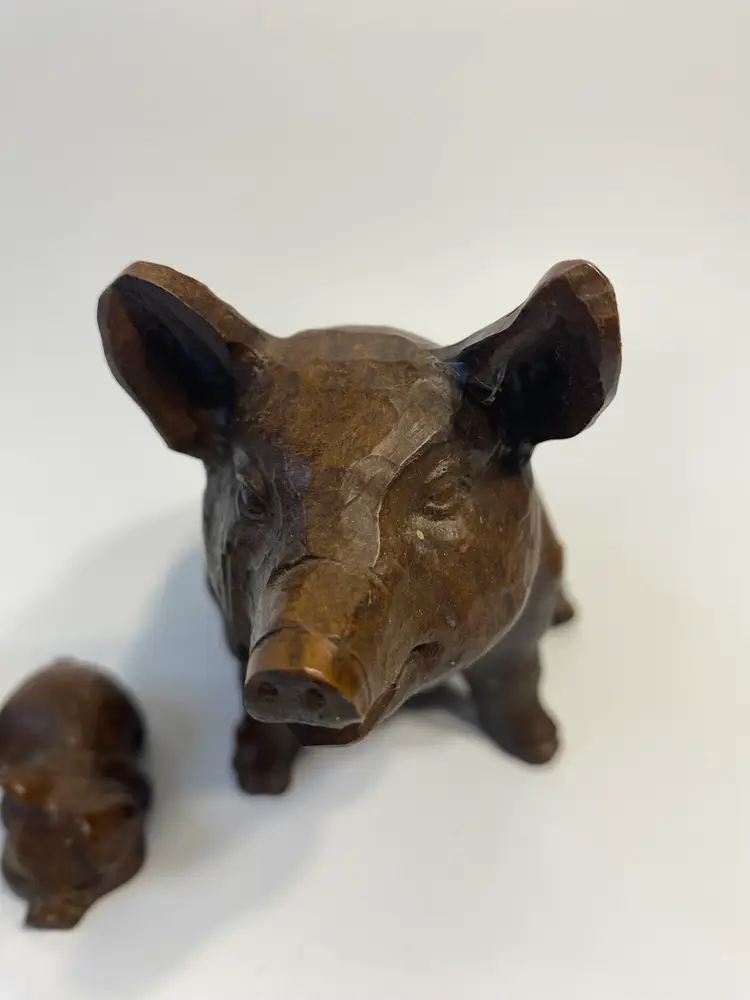 Red Mill Mfg Handcrafted Pig Figurines Molded Crushed Pecan Shell Resin