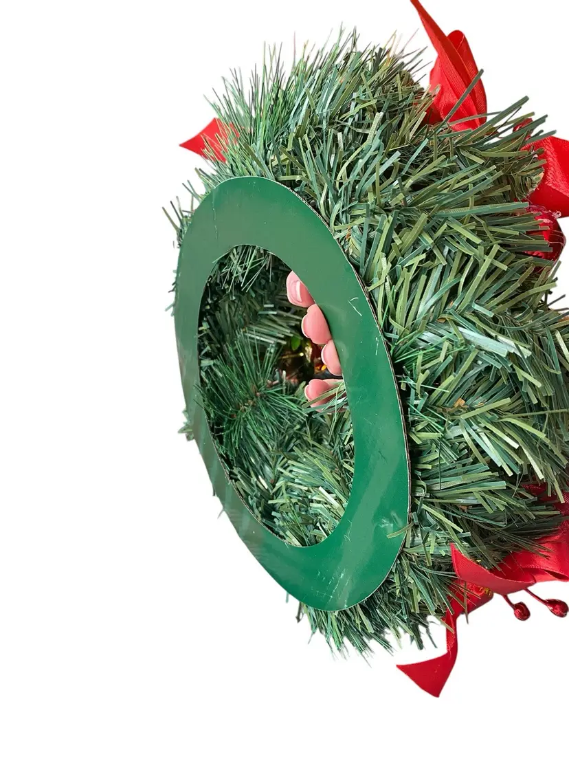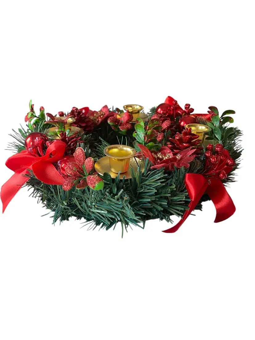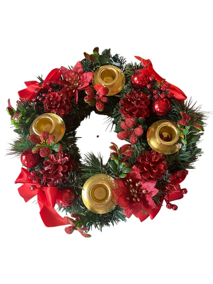 Red Ribbon Christmas Advent Holiday Wreath Candle Holder Silk Flower Centerpiece