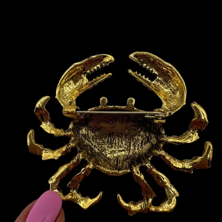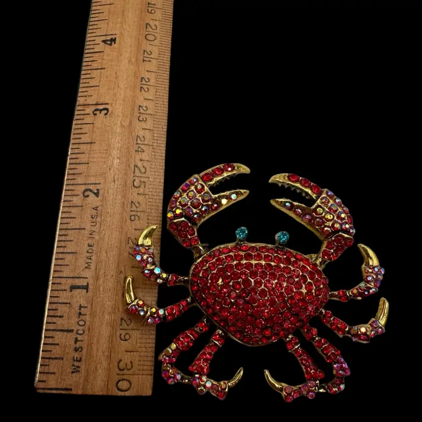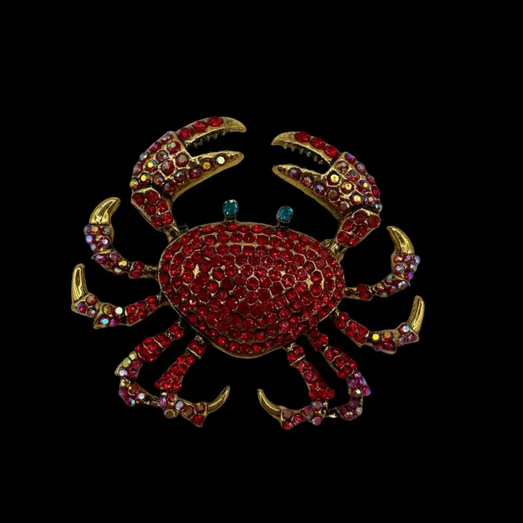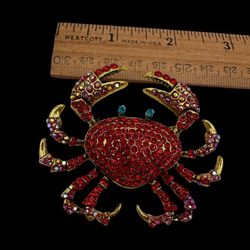 Vintage inspired crab brooch . Red stones with blue eyes . Like new condition