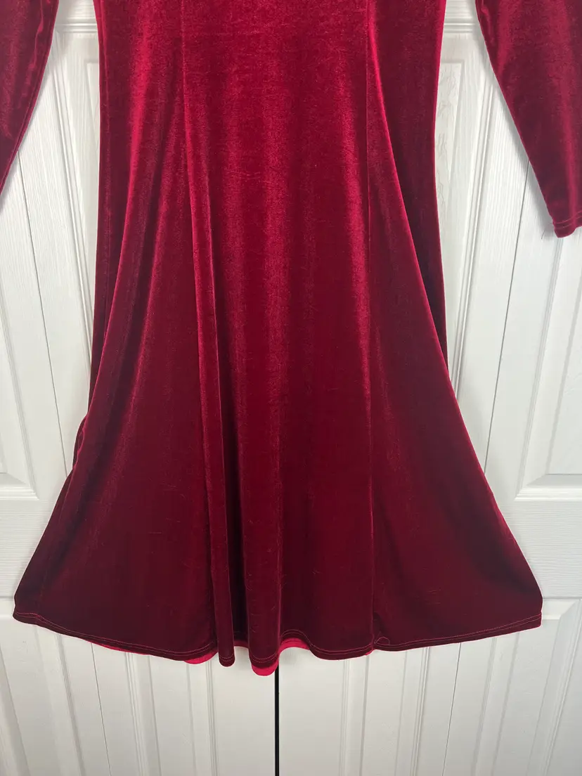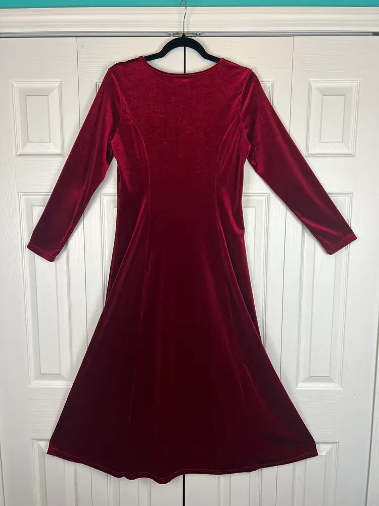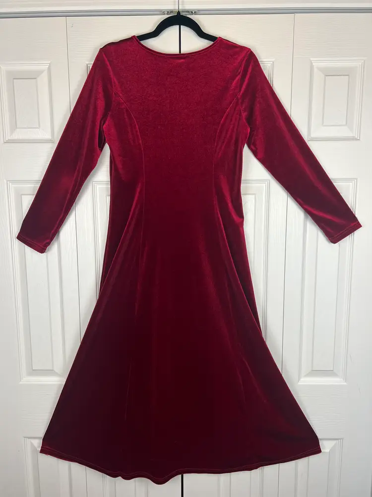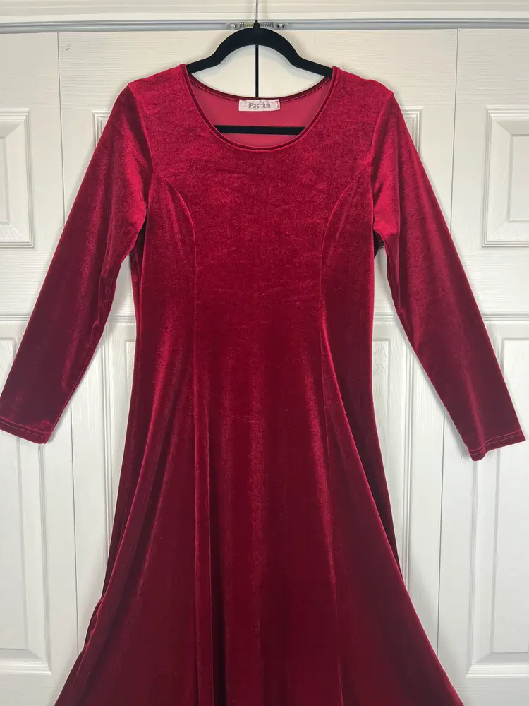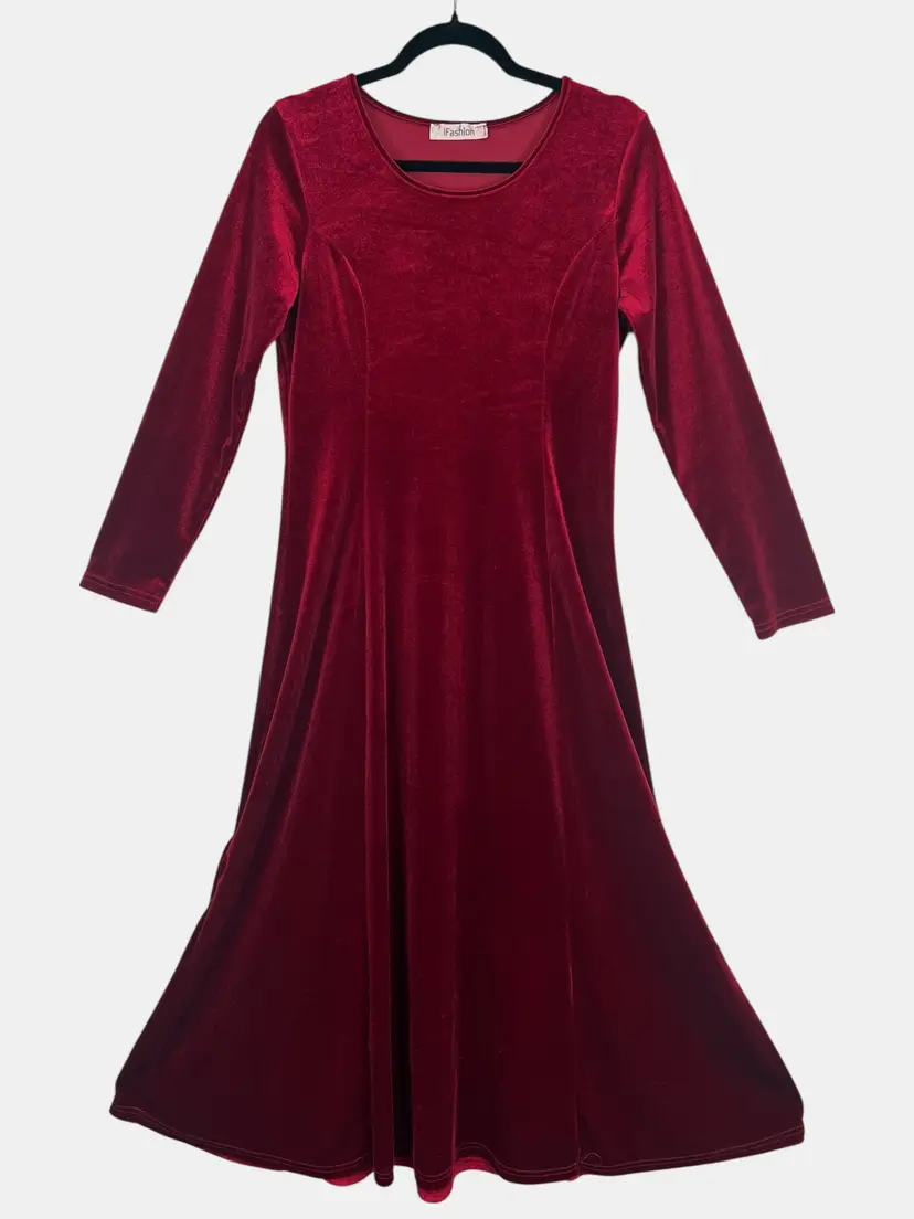 Fabric: Velour (stretch) Features: Long sleeve, fit & flare, midi length, stretch