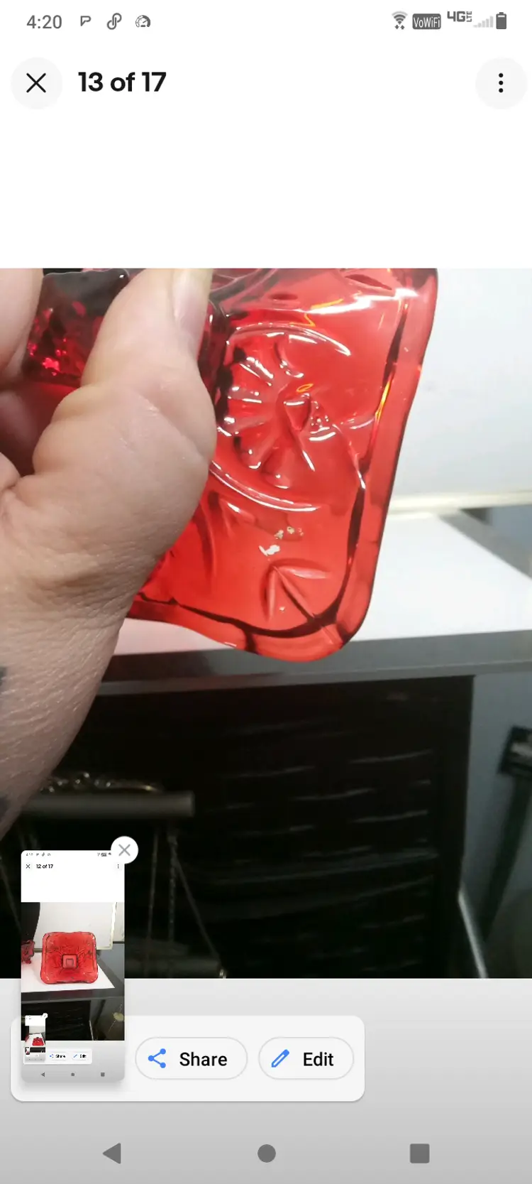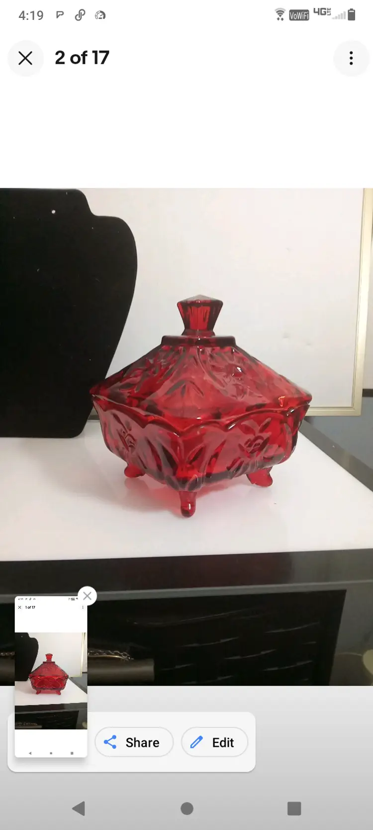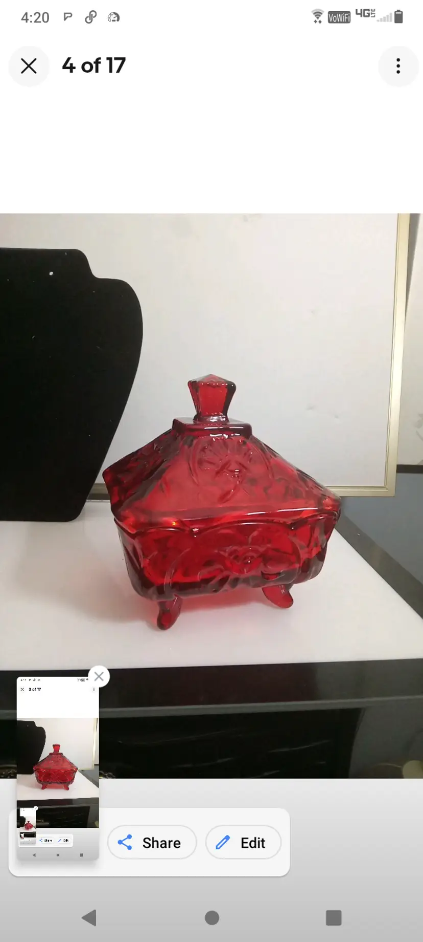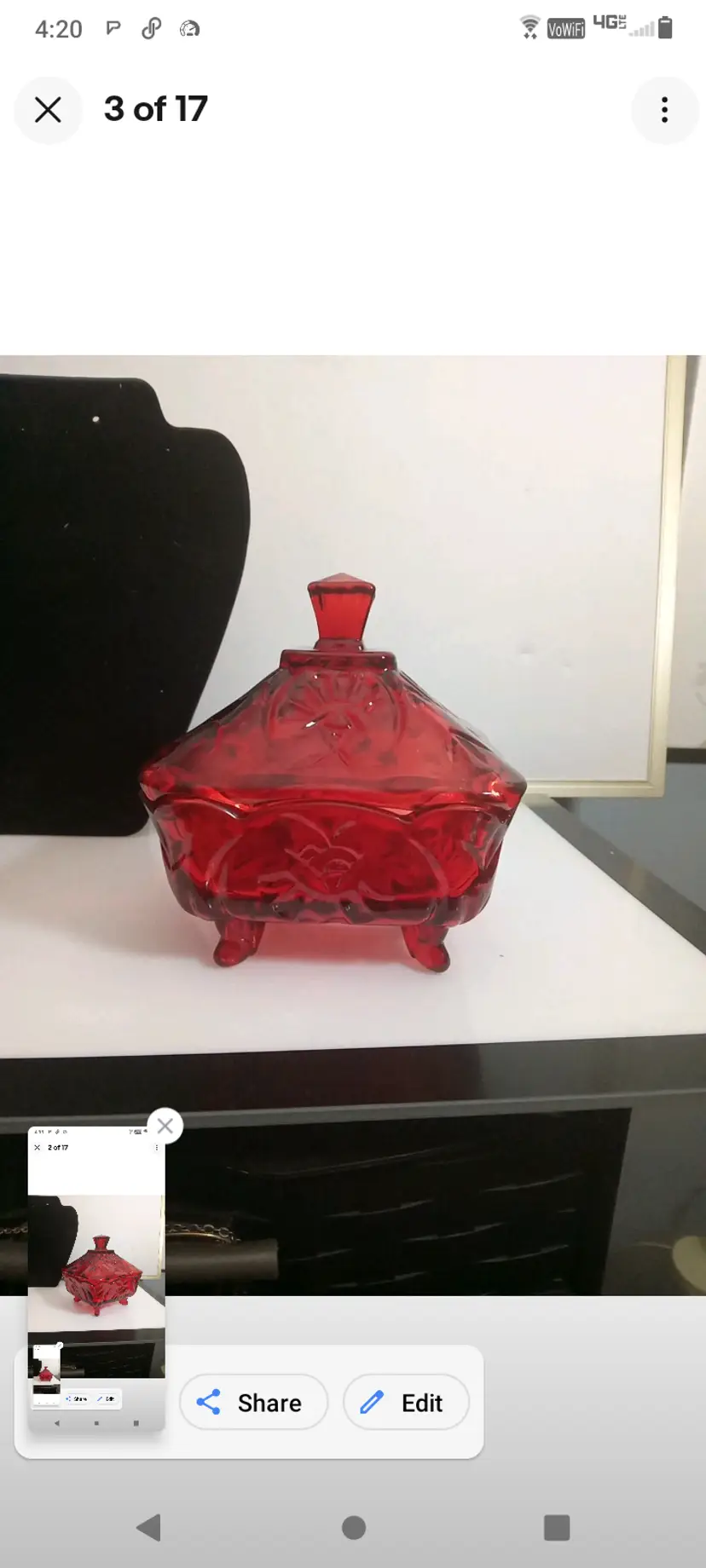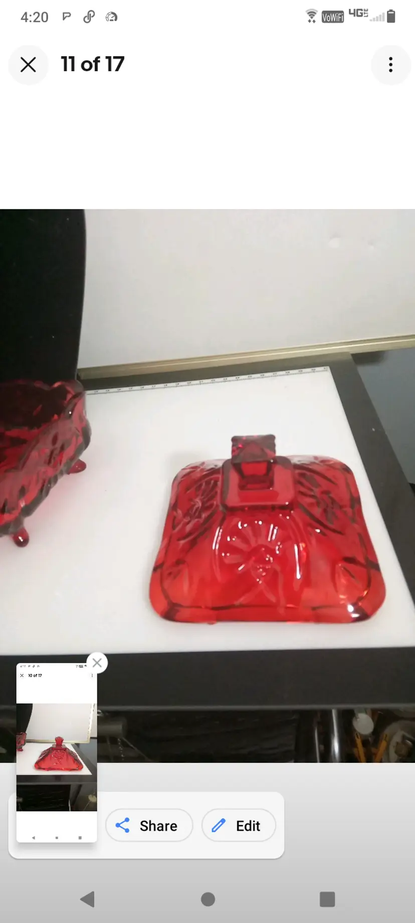 This vintage candy dish is a charming addition to any kitchen or collection. The square cut glass provides a unique and elegant look, while the ruby red color adds a pop of color to any room. The dish comes with pedestal feet and is perfect for storing candies, nuts, or any other small treats.