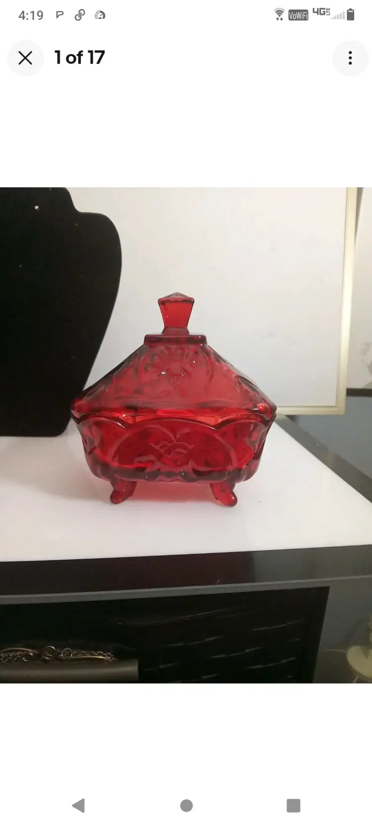 The brand of this candy dish is unknown, but it is sure to be a conversation starter. Its dimensions are 4.25 inches in height, 4 inches in length, and 4 inches in width. This item falls under the categories of collectibles, kitchen and home, and kitchen storage and organization.