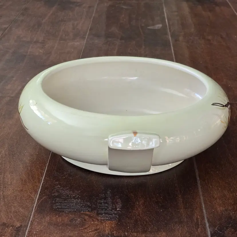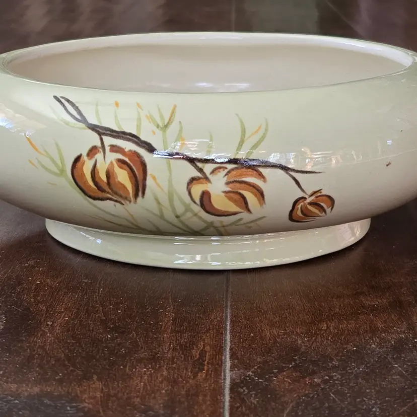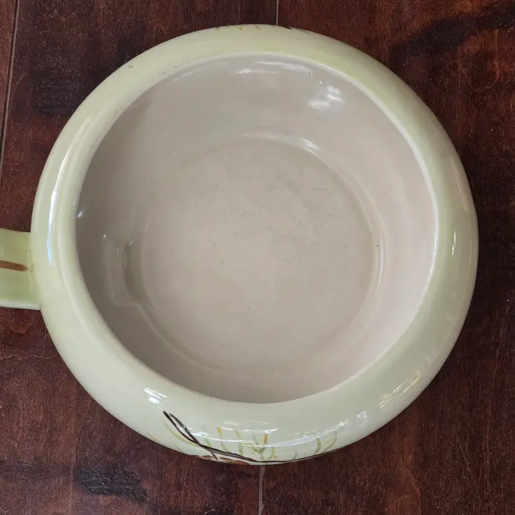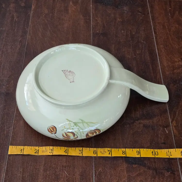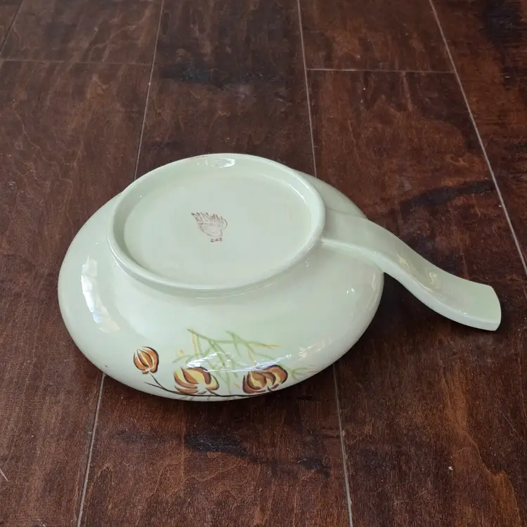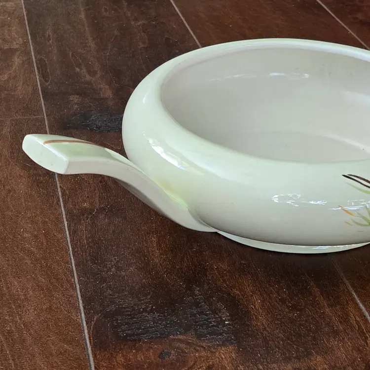 Red Wing Pottery Casserole Dish Lanterns Pattern Mid Century Modern NO LID Included. Used condition with a bit of tape residue, manufacturer flaws within the glaze and a bit of dirt on the bottom. Please view all the photos and please ask any questions prior to purchase when possible.