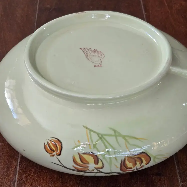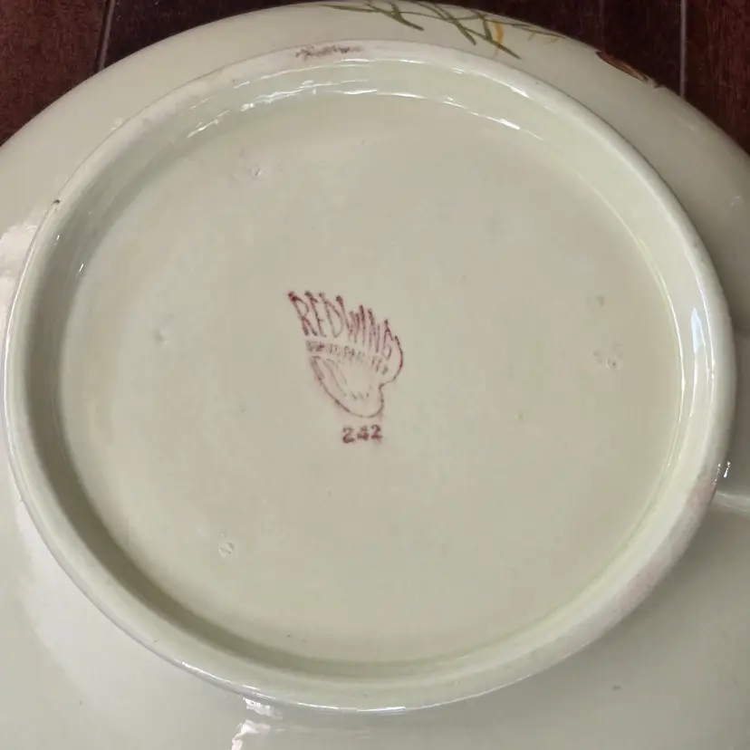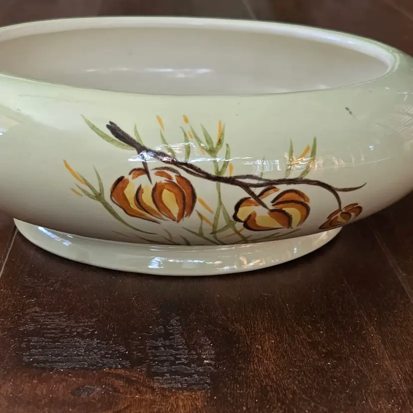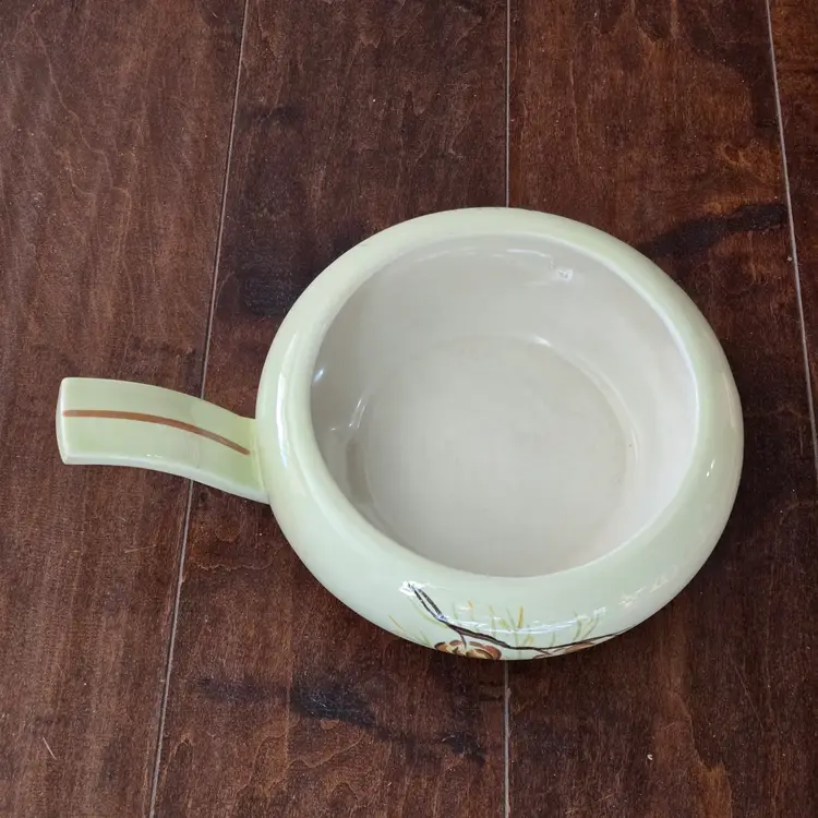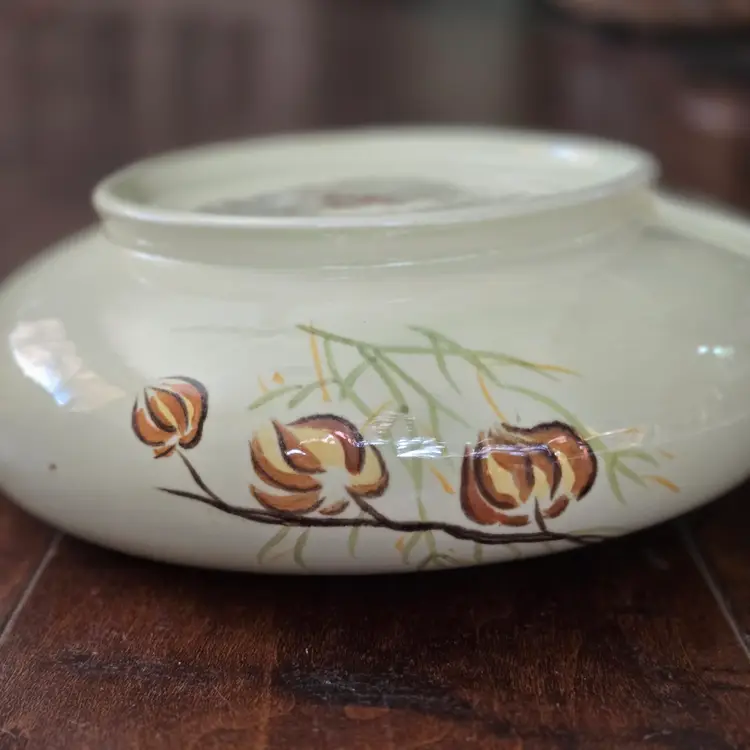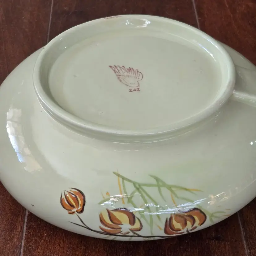 Red Wing Pottery Casserole Dish Lanterns Pattern Mid Century Modern NO LID Included. Used condition with a bit of tape residue, manufacturer flaws within the glaze and a bit of dirt on the bottom. Please view all the photos and please ask any questions prior to purchase when possible.