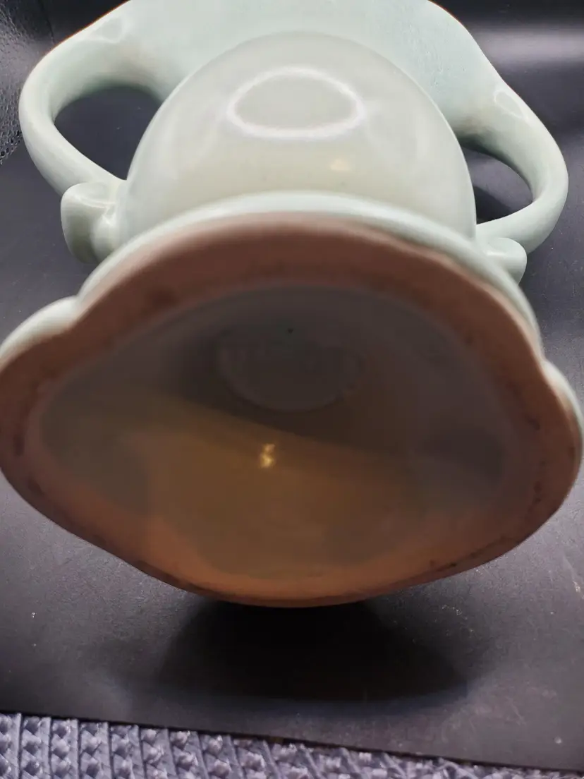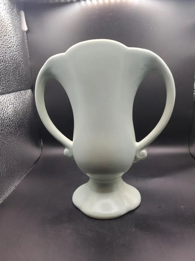 Nice mint green old Red Wing Vase. Looks like a mom with her hands on hips! Lol. Great condition. 8" tall by 6" wide.