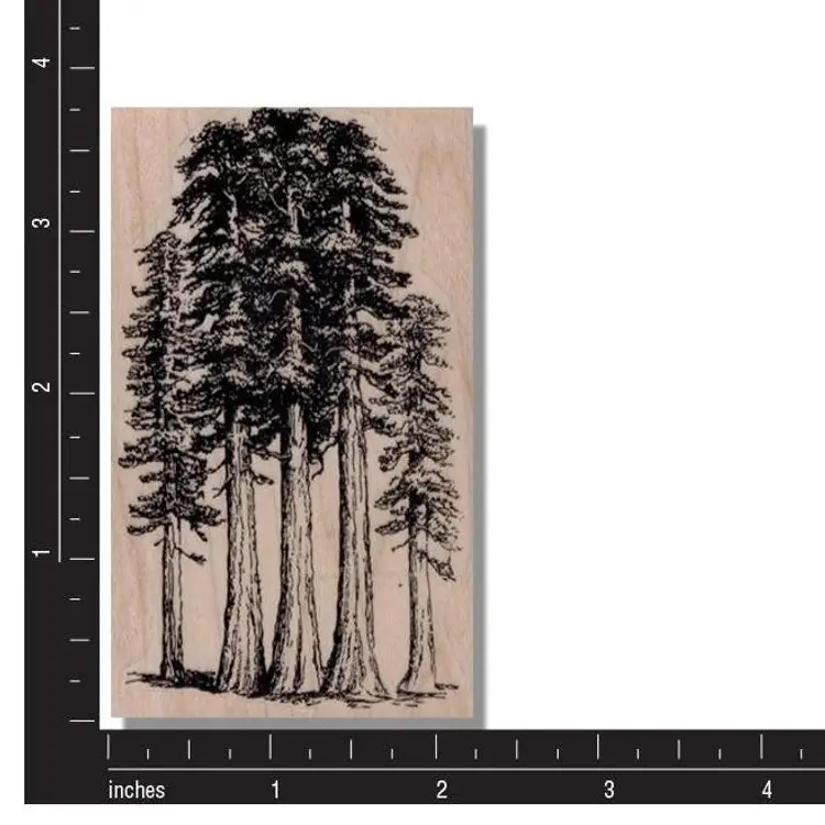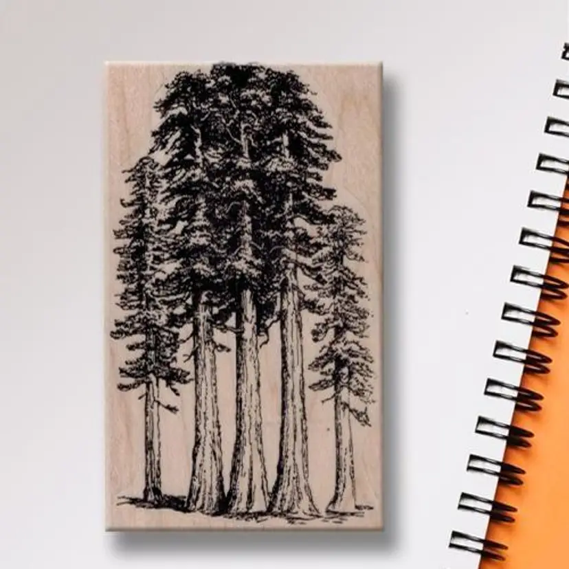 Redwood Trees Rubber Stamp Size: 2-1/4 x 3-1/2 inches Wood Mounted Red Rubber Handmade • Perfect for card making, gift tags, scrapbooking, journaling and craft projects