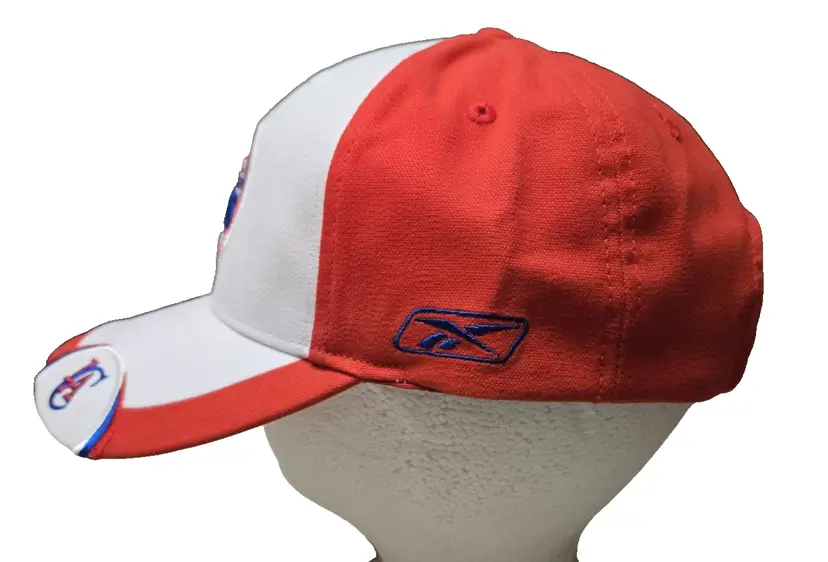 The Reebok NBA Los Angeles Clippers Hat Cap in red is a stylish accessory for any basketball fan. It has a hook and loop closure. This officially licensed cap features the iconic team logo of the Los Angeles Clippers, making it a perfect choice for showing support during the regular season. The adjustable size ensures a comfortable fit for unisex adults, and the high-quality construction by Reebok ensures durability. Whether you're heading to a game or just want to add a touch of team spirit to your outfit, this basketball cap is a must-have for any fan of the NBA. New with tag
