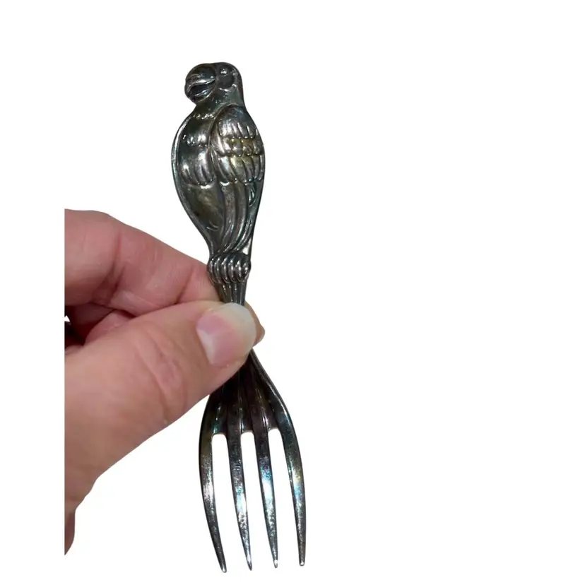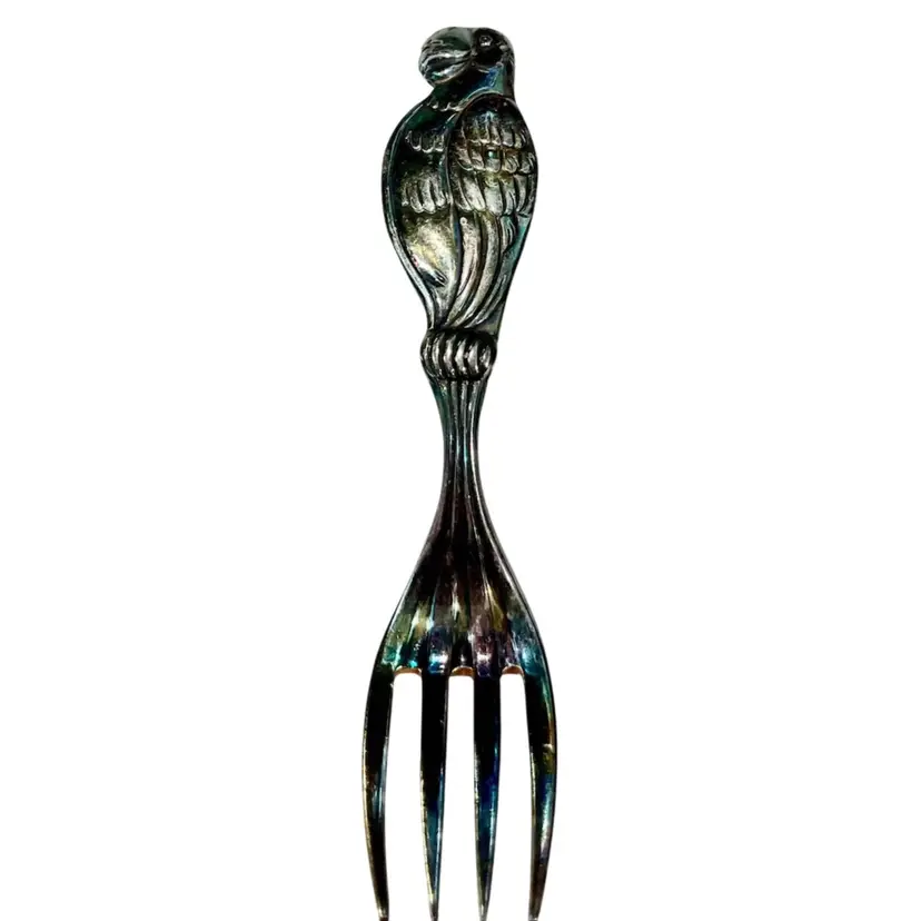 Material: Silver-plated Condition: Excellent condition, more tarnish on the parrot fork