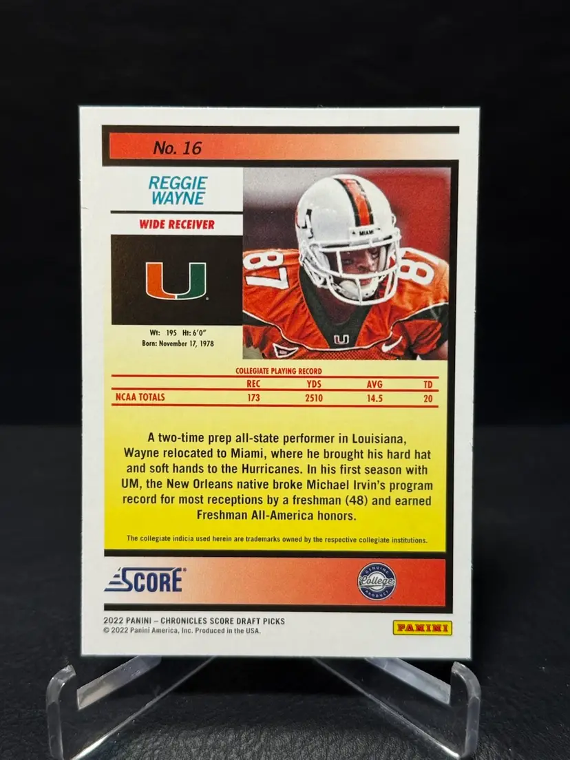 Reggie Wayne 2022 Panini Chronicles Score Draft Picks #16 Miami Hurricanes Indianapolis Colts