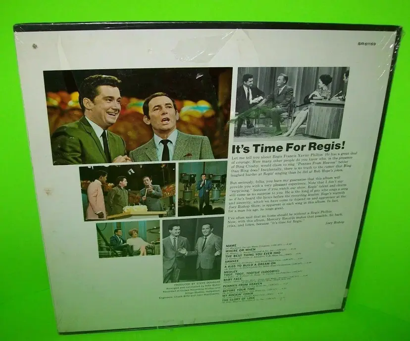 Artist: Regis Philbin Modified Item: No Country/Region of Manufacture: United States Custom Bundle: No Style: Traditional/Vocal Duration: LP Record Grading: new Speed: 33 RPM Record Size: 12" Release Title: It's Time For Regis Record Label: Mercury Release Year: 1968 Language: English Edition: First Pressing, First Edition Genre: Pop Sleeve Grading: new Features: Sealed, Original Cover Format: Record Type: Album Inlay Condition: Very Good Plus (VG+) Case Type: Cardboard Sleeve Material: Vinyl Color: Black